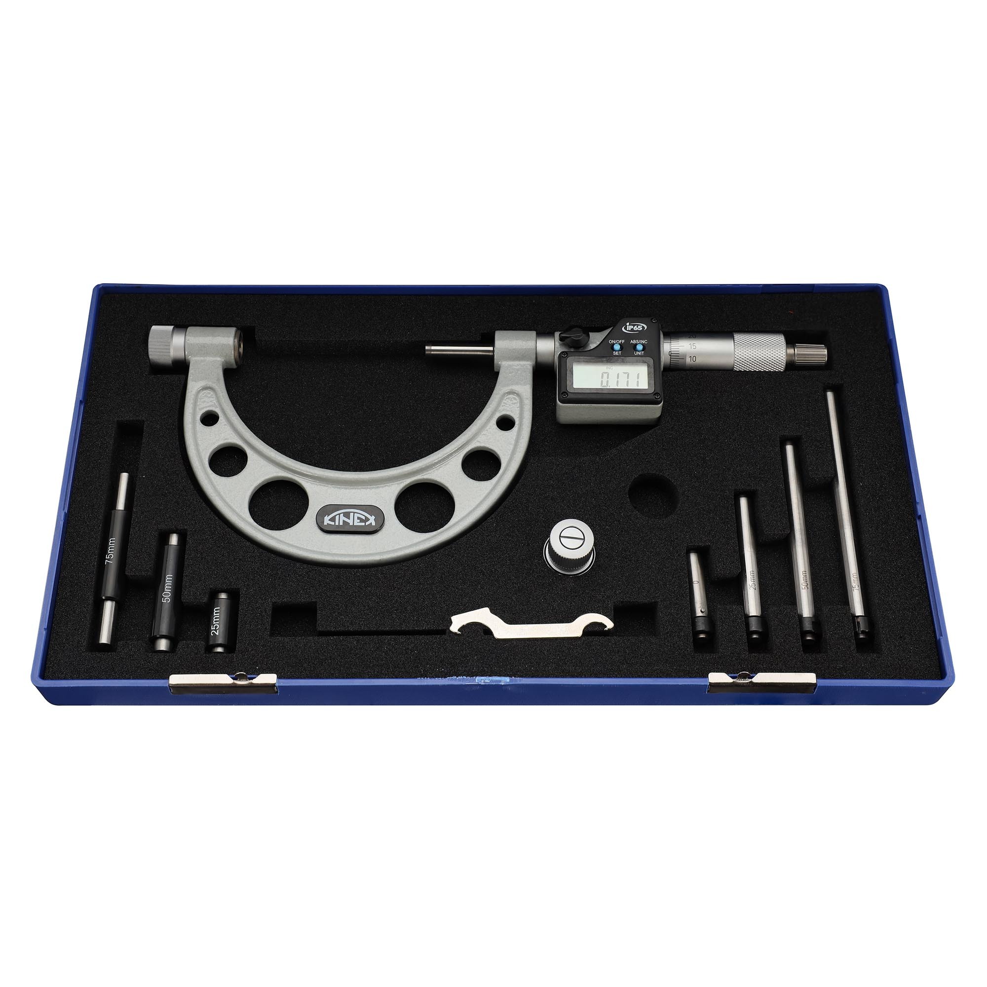 Микрометр электронный МКЦ от бренда KINEX (модель 7032-02-100) – это высокоточный инструмент измерения диаметра деталей до 100 мм с точностью до 0,003 мм. Данный микрометр соответствует стандарту DIN863, что гарантирует его надежность и качество исполнения. Корпус устройства выполнен по классу защиты IP65, благодаря чему он защищен от пыли и влаги, а значит может использоваться как внутри помещений так и вне их. Это идеальное решение для профессионалов своего дела!