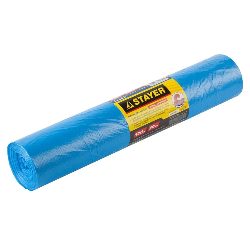 Stayer 120 л, 50 шт, синие, особопрочные, мусорные мешки (39156-120)