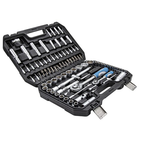Набор автомобильного инструмента РемоКолор 94 предмета 43-4-194 предназначен для обслуживания автомобиля профессионалами и автолюбителями. Изделия в наборе изготовлены из высококачественной хромованадиевой стали, упругой и износостойкой. Кейс для инструментов выполнен из экологичного пластика.