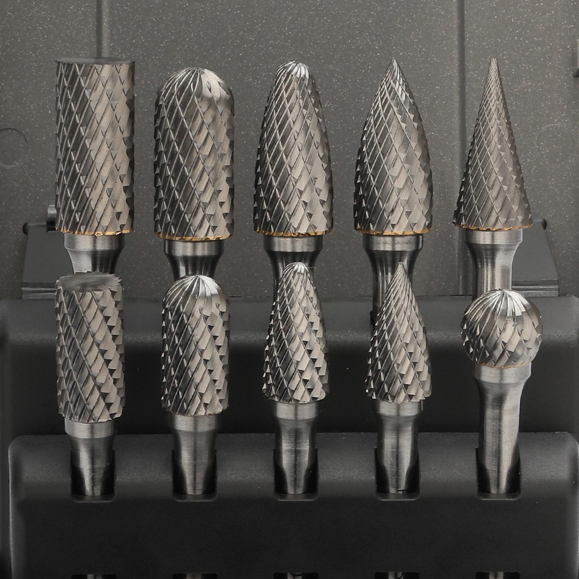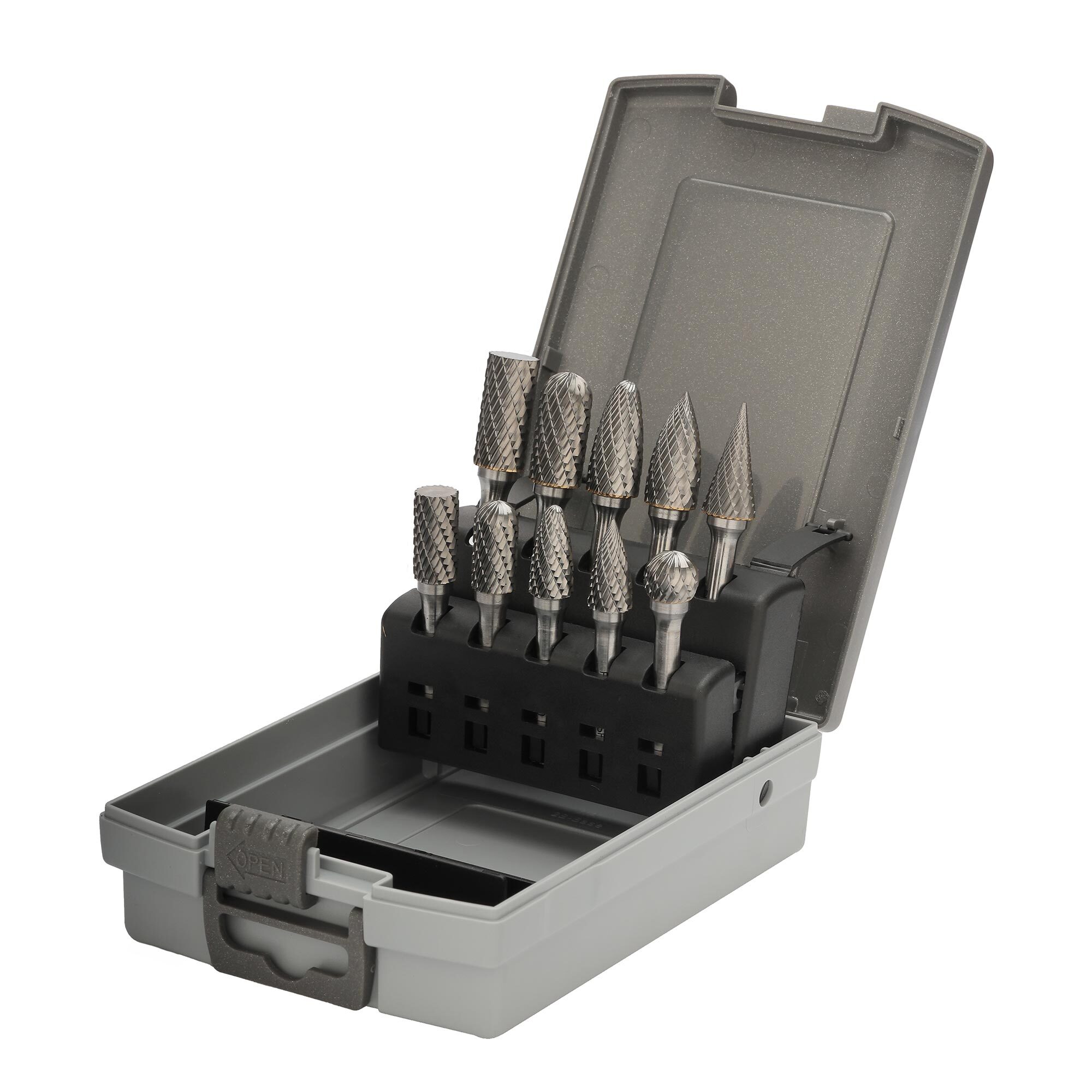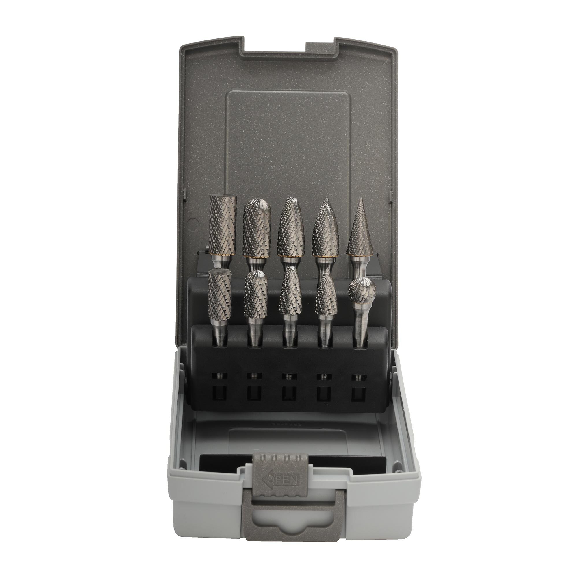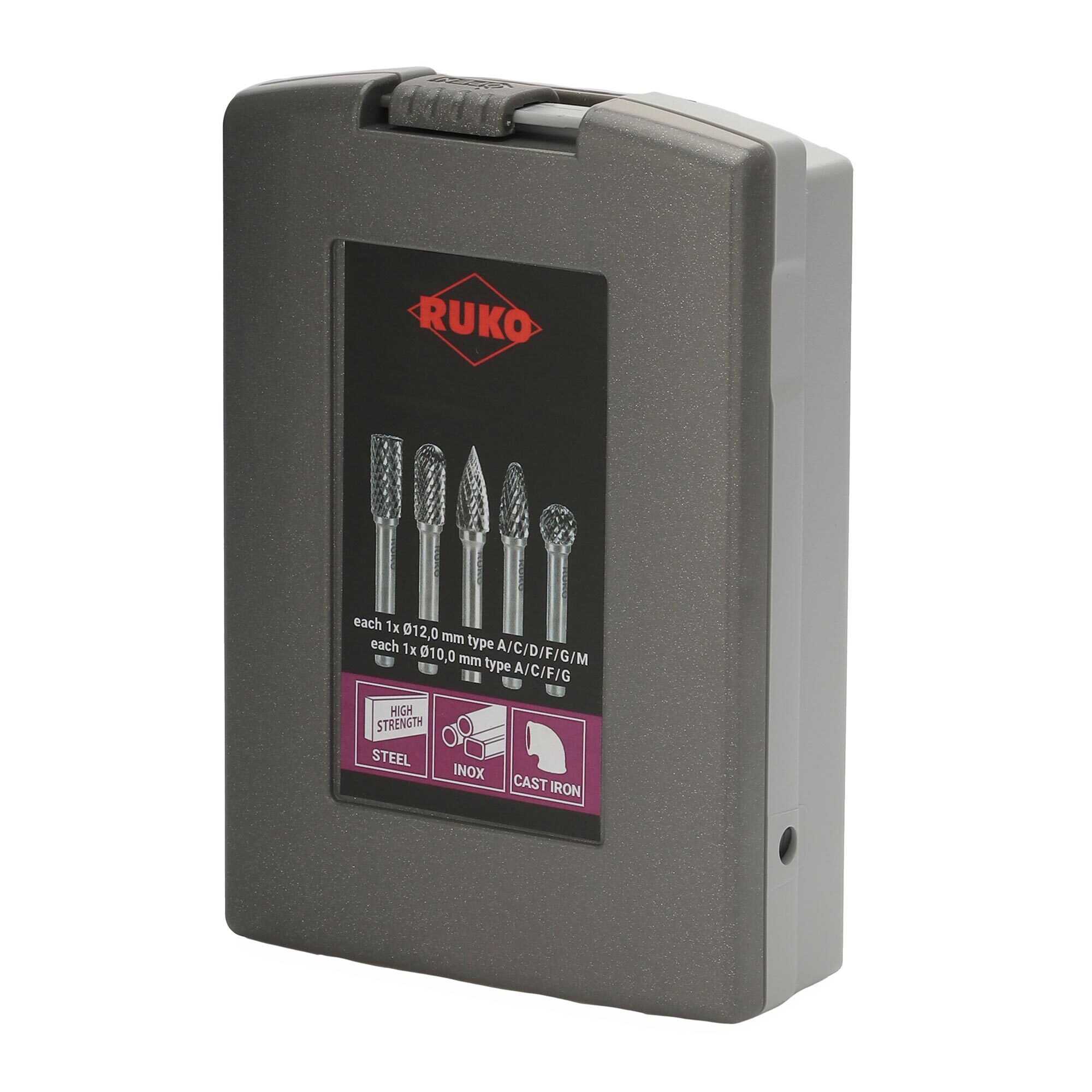 Набор борфрез твердосплавных HM 10 шт RUKO 116003RO предназначен для снятия заусенцев, обработки кромок, сварных швов и других поверхностей.