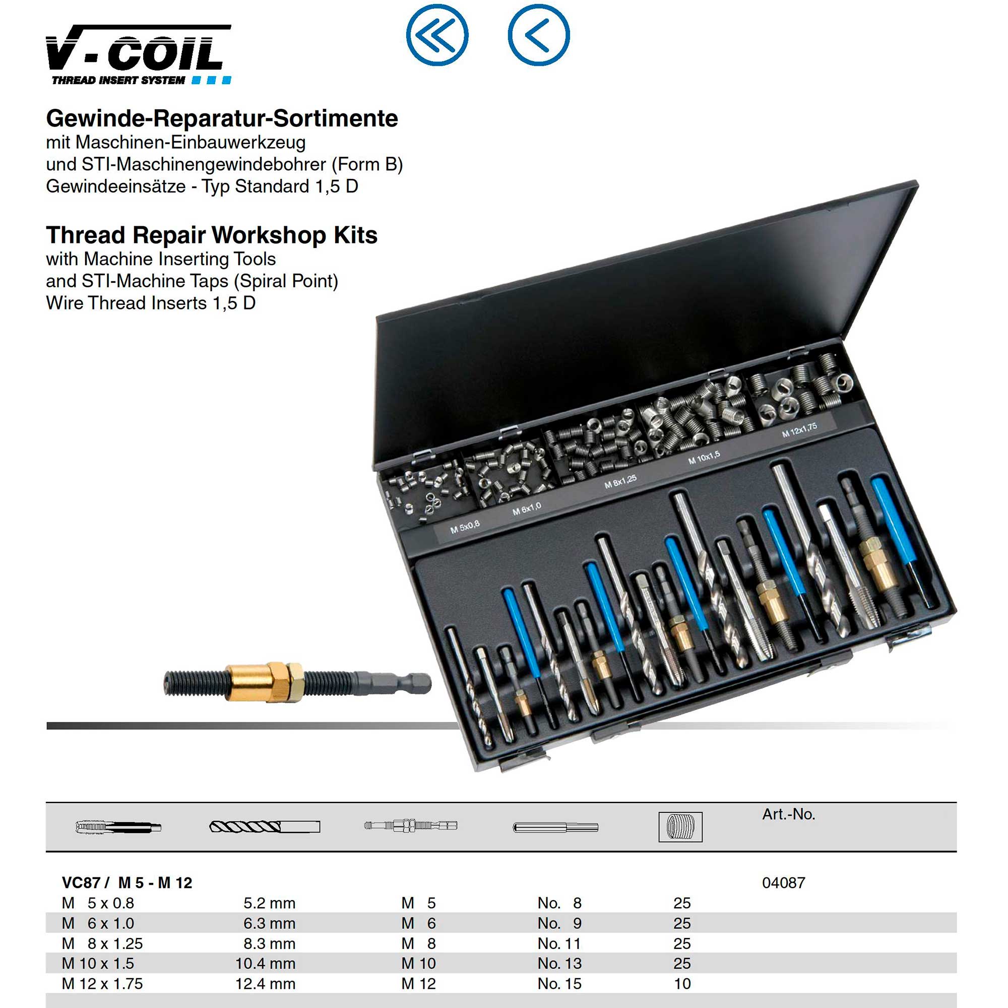 Набор для восстановления резьбы VC87 М5-М12 130пр V-Coil Machine Volkel 04087.