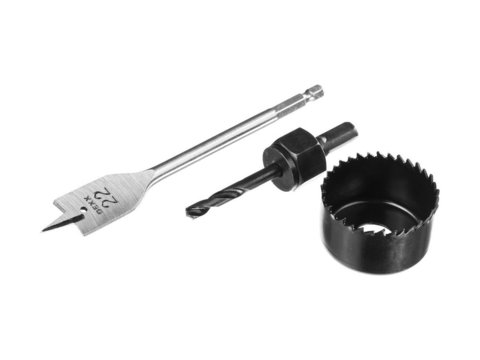 Набор для врезки замков DEXX: Коронка-чашка d=54мм, сверло перовое d=22мм, центрирующее сверло d=6мм
