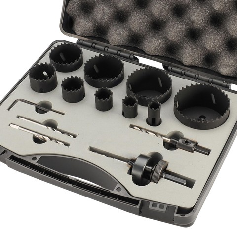 H-Tools Набор коронок Bi-metall HSSE-Co8, предназначен для сверления отверстий в легированной и низколегированной стали (до 1000 Н/мм2), нержавеющей стали, цветных металлах, а также по дереву, гипсокартону, ПВХ, МДФ и сэндвич-панелям. Применяется совместно с дрелями и сверлильными станками в безударном режиме.