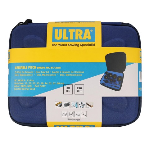 Набор коронок Bi-metall 19-68мм HSSE-Co8 13пр 4-6Tpi ULTRA SC 3836R - предназначены для сверления отверстий в различных материалах, таких как дерево, металл и пластик.