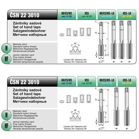 Метчики комплектные, метрическая резьба M/MF Bucovice(CzTool).