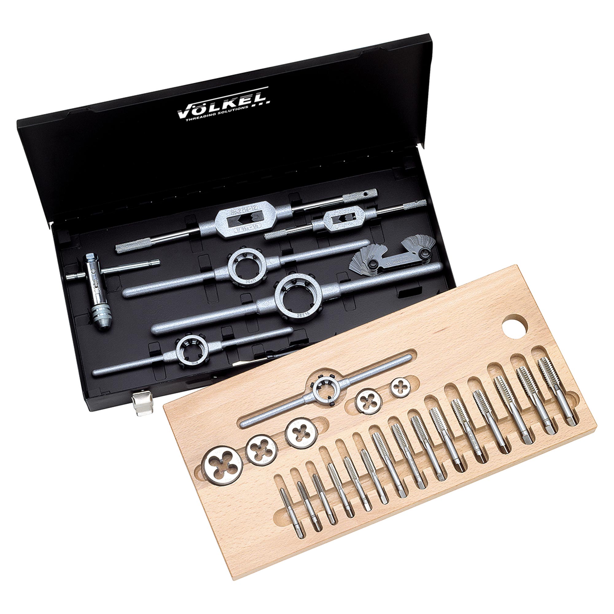 Высокоточный набор метчиков и плашек BSF от немецкого бренда Volkel – ваш надежный помощник в работе! Хром-ванадиевая сталь HSS-G 35 обеспечивает долговечность инструментов, а их универсальность позволяет быстро выполнять широкий спектр резьбовых работ (диаметры от 1/4" до 1,0"). Выигрывайте время и качество вместе с профессиональным инструментом Volkel!