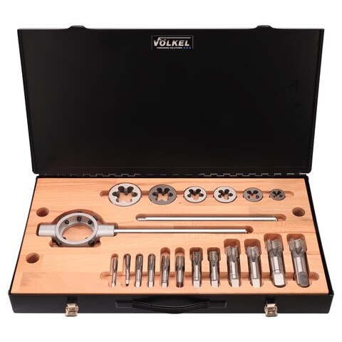 Набор метчиков и плашек G(BSP) 1/8 -1.0 HSS-G 26пр VOELKEL V48020 предназначен для создания внутренней и наружной резьбы в различных материалах.