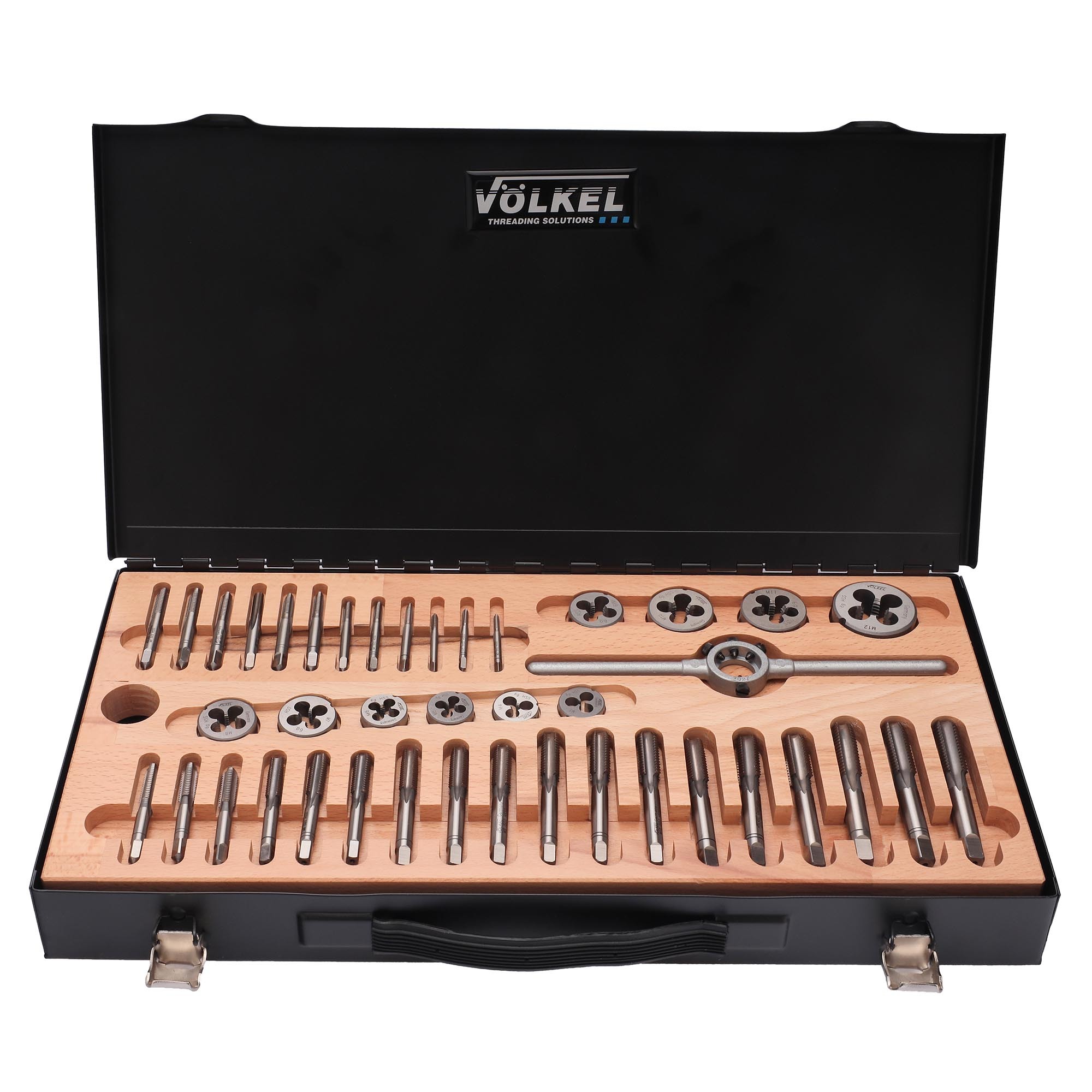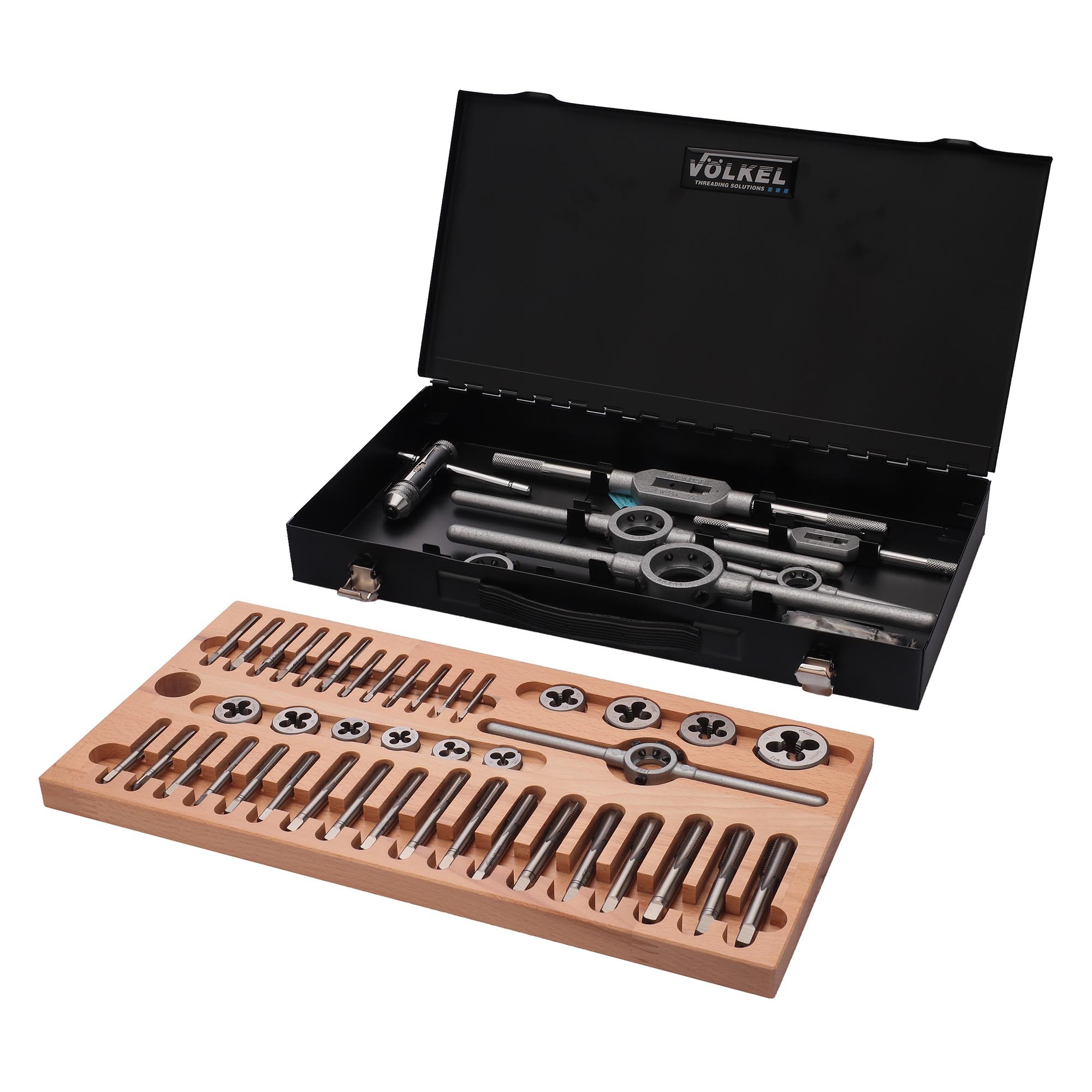 Набор метчиков и плашек предназначен для создания внутренней и наружной резьбы в различных материалах. Метчики и плашки изготовлены из высококачественной быстрорежущей стали HSS-G, которая гарантирует прочность и износостойкость. Подходит для обработки заготовок, выполненных из легированной стали, чугуна, алюминия, меди, бронзы, цинка, с пределом прочности до 900MPa. Инструмент упакован в прочный металлический чемодан.