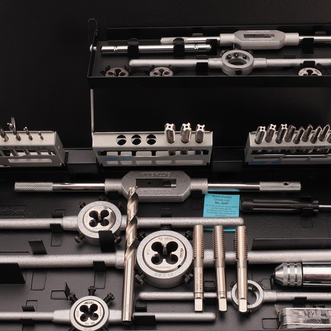 Набор метчиков и плашек предназначен для создания внутренней и наружной резьбы в различных материалах. Метчики, плашки и сверла изготовлены из высококачественной быстрорежущей стали HSSE, которая гарантирует прочность и износостойкость. Подходит для обработки заготовок, выполненных из легированной и нержавеющей стали, чугуна, алюминия, меди, бронзы, цинка, с пределом прочности до 1200MPa. Набор включает: комплектные метчики из 3 шт. для метрической резьбы с основным шагом, изготовленные в соответствии с DIN352, ISO2(6h); плашки с основным шагом для метрической резьбы, изготовленные в соответствии с DIN EN 22 568, ISO2(6g); сверла по металлу HSS-G; воротки для метчиков и плашек; шаблон резьбовой и отвертка. Инструмент упакован в прочный металлический кейс.