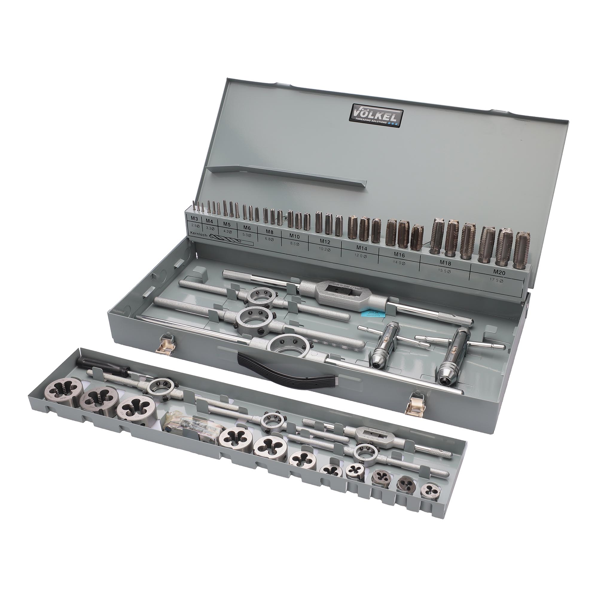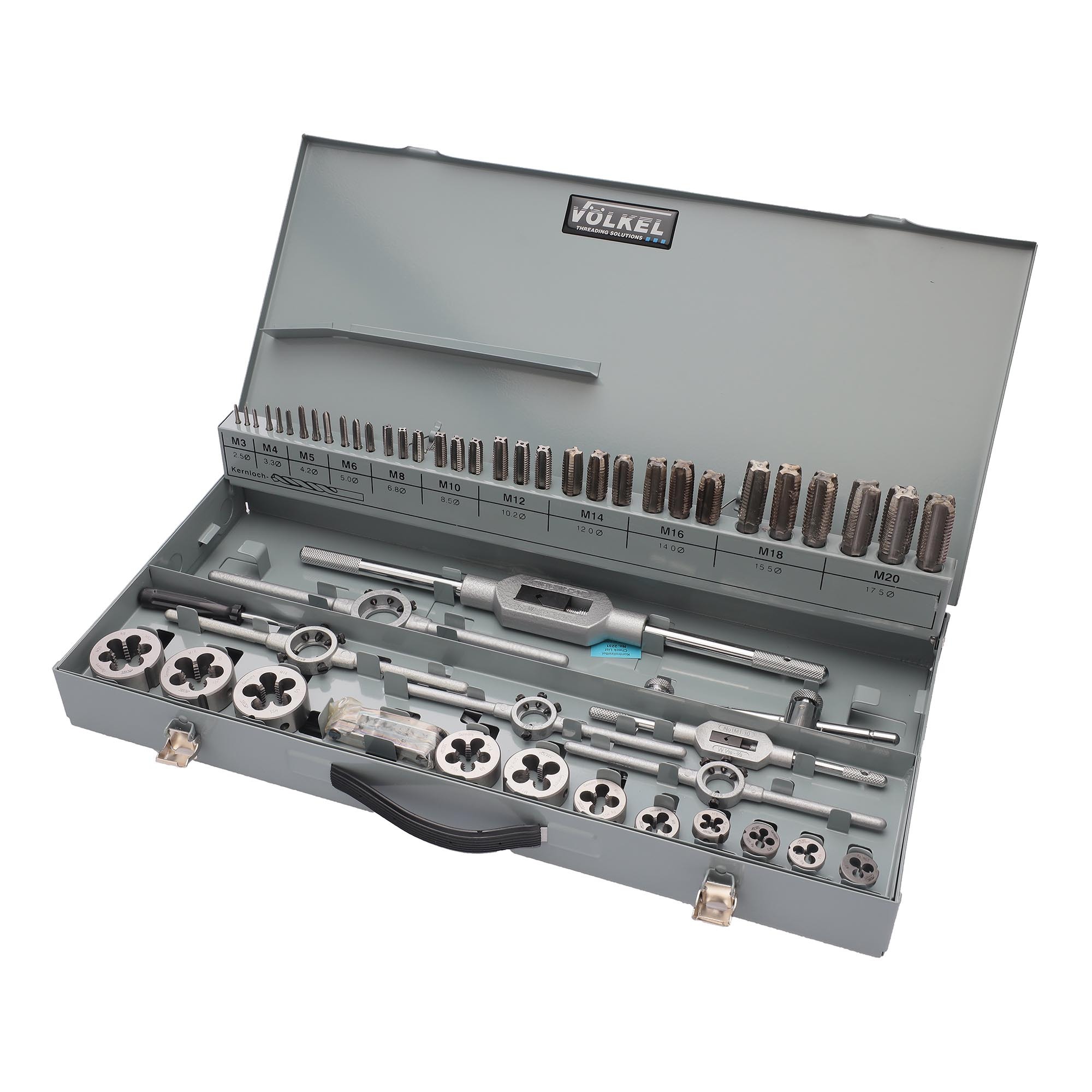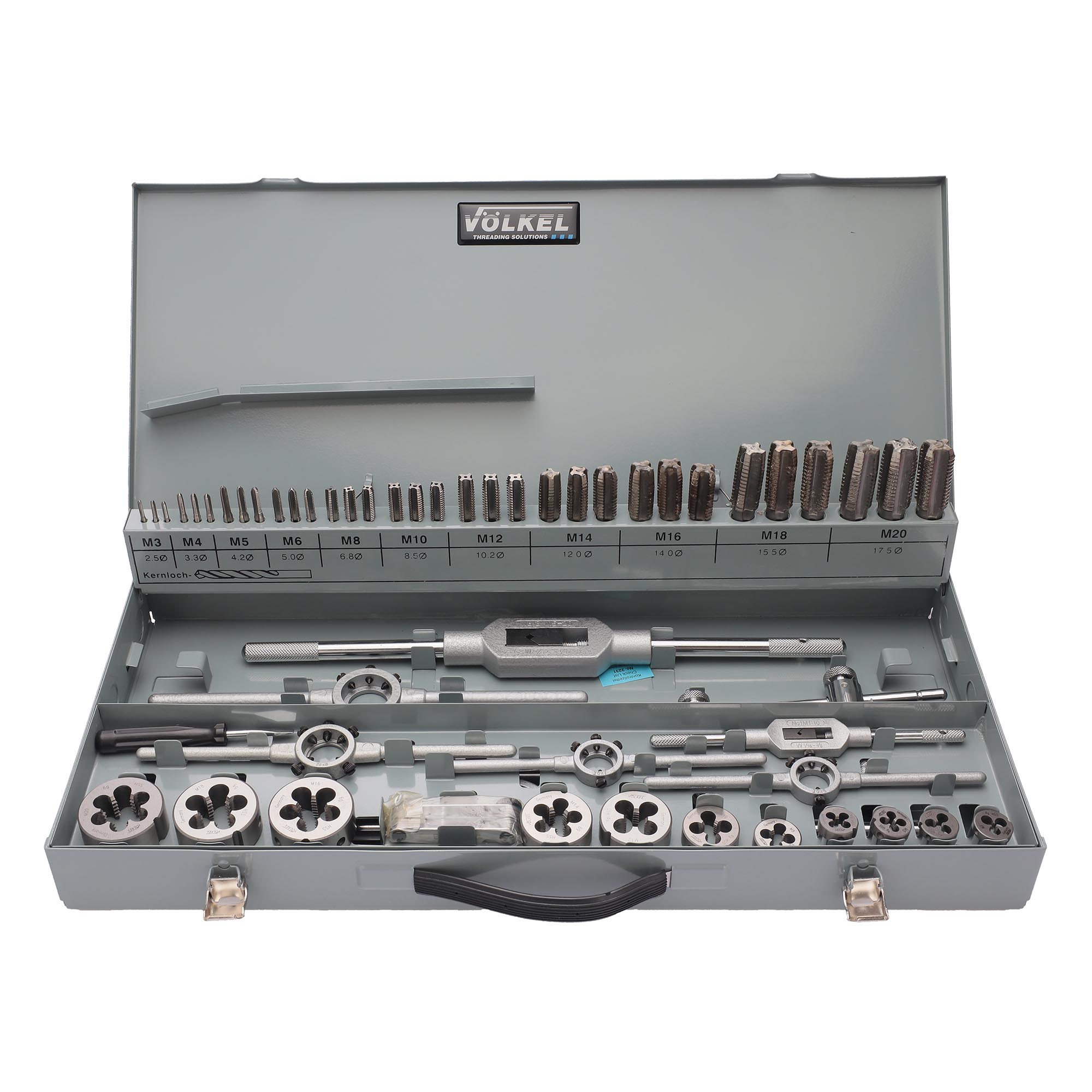 Набор метчиков и плашек предназначен для создания внутренней и наружной резьбы в различных материалах. Метчики и плашки изготовлены из высококачественной быстрорежущей стали HSS-G, которая гарантирует прочность и износостойкость. Подходит для обработки заготовок, выполненных из легированной стали, чугуна, алюминия, меди, бронзы, цинка, с пределом прочности до 900MPa. Инструмент упакован в прочный металлический чемодан.