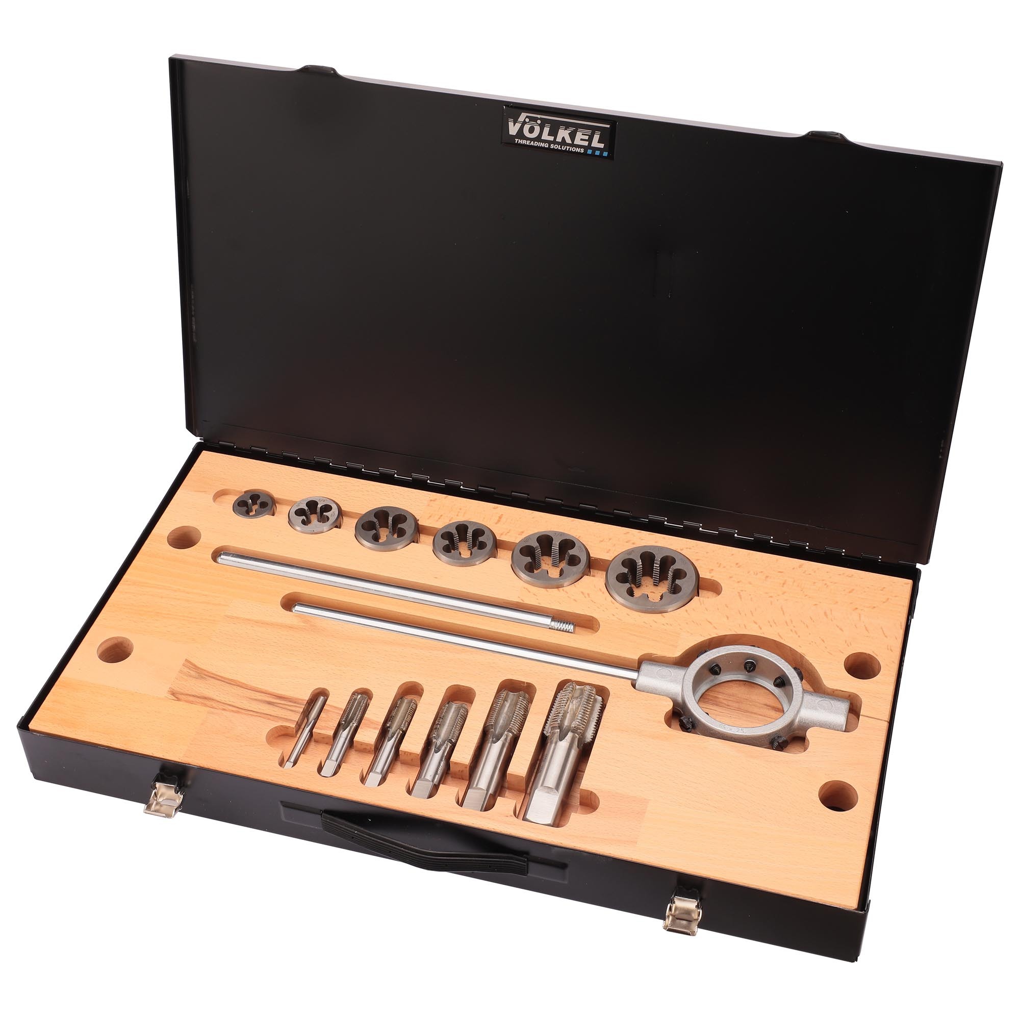 Набор метчиков и плашек NPT 1/8-1.0 HSS-G 20пр VOELKEL V48025 предназначен для создания внутренней и наружной конической резьбы американского стандарта NPT (National Pipe Taper) в различных материалах.