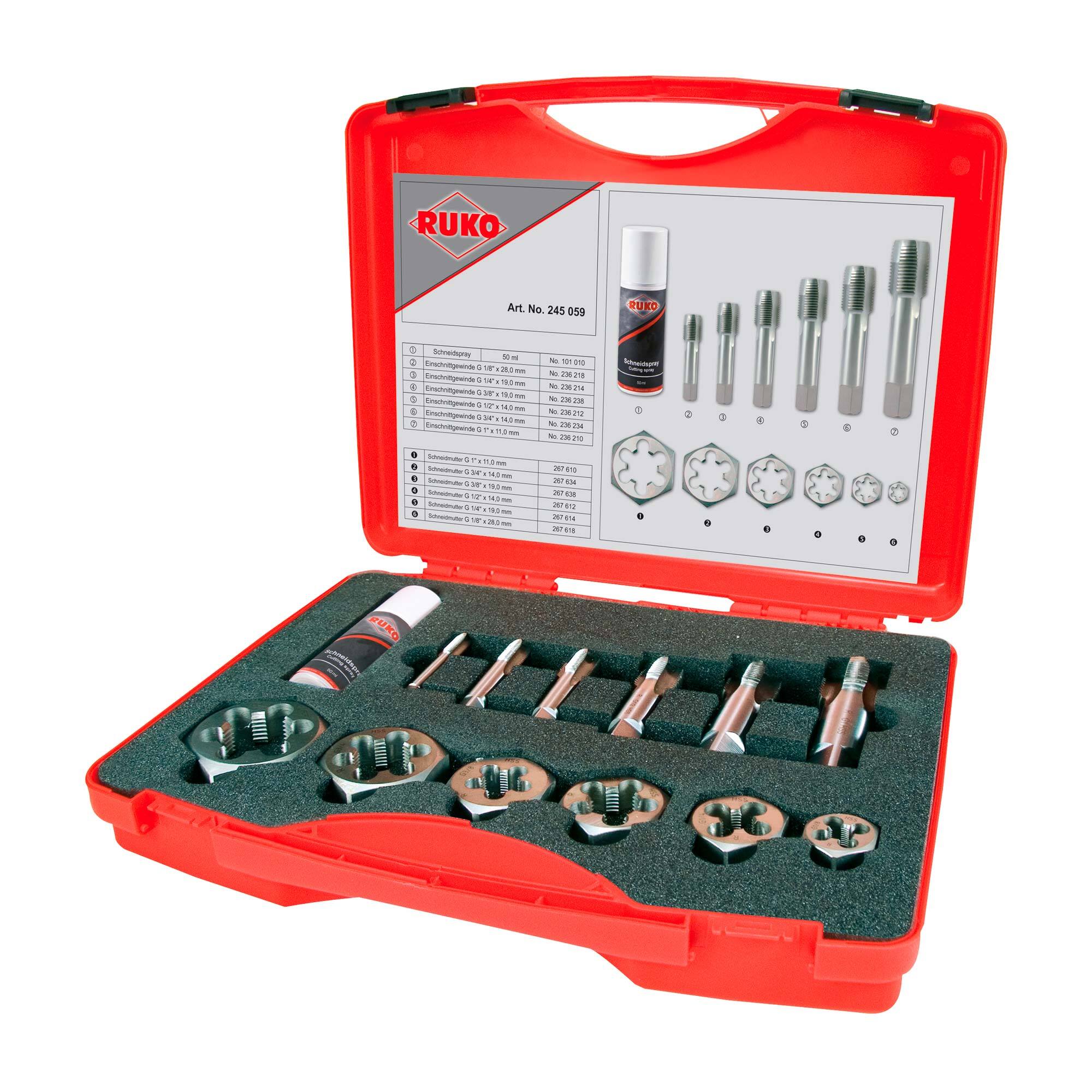 Набор метчиков и плашек для резьбы G(BSP) RUKO 13 предметов 245059