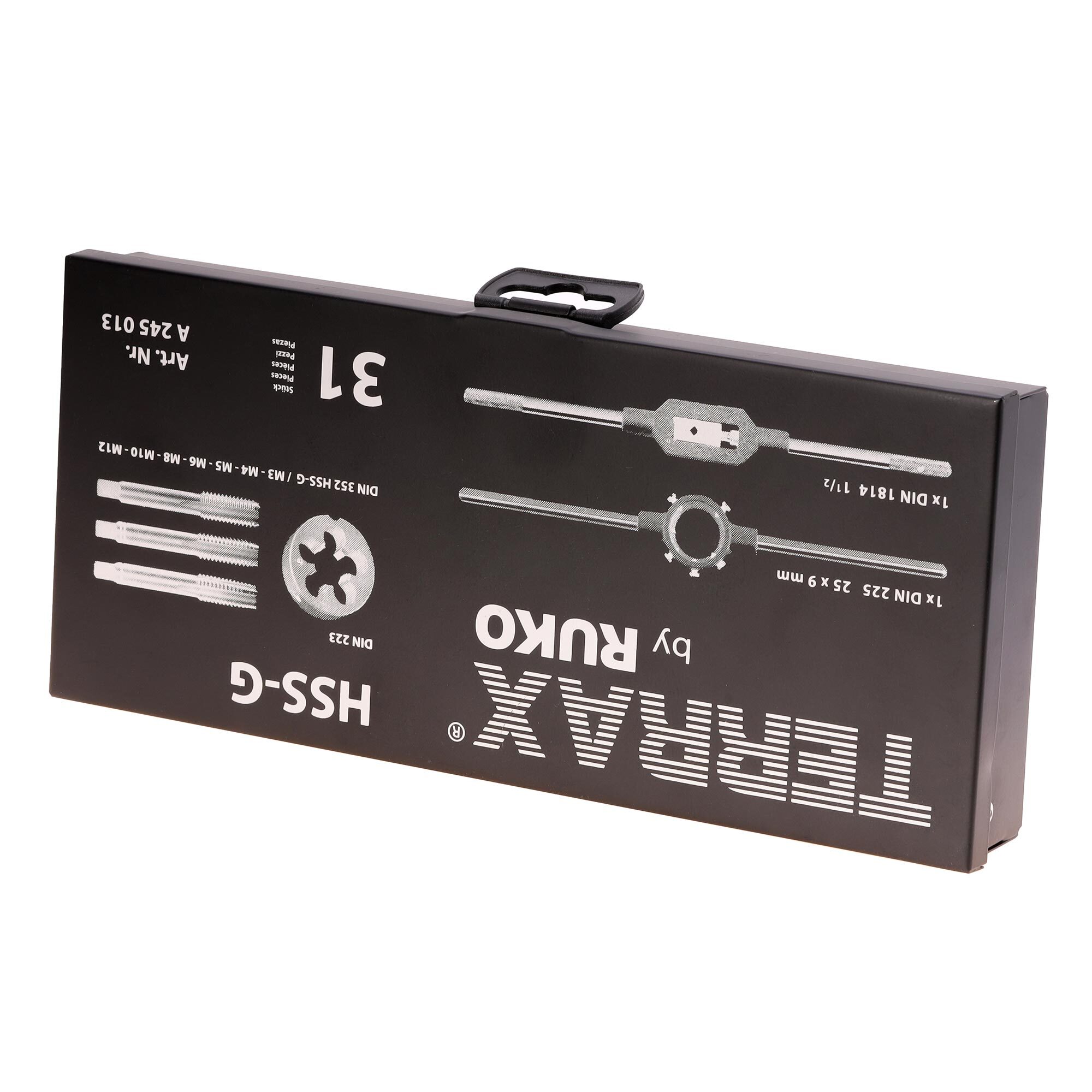 Набор метчиков и плашек M3-M12 31пр HSS-G Terrax by Ruko A245013