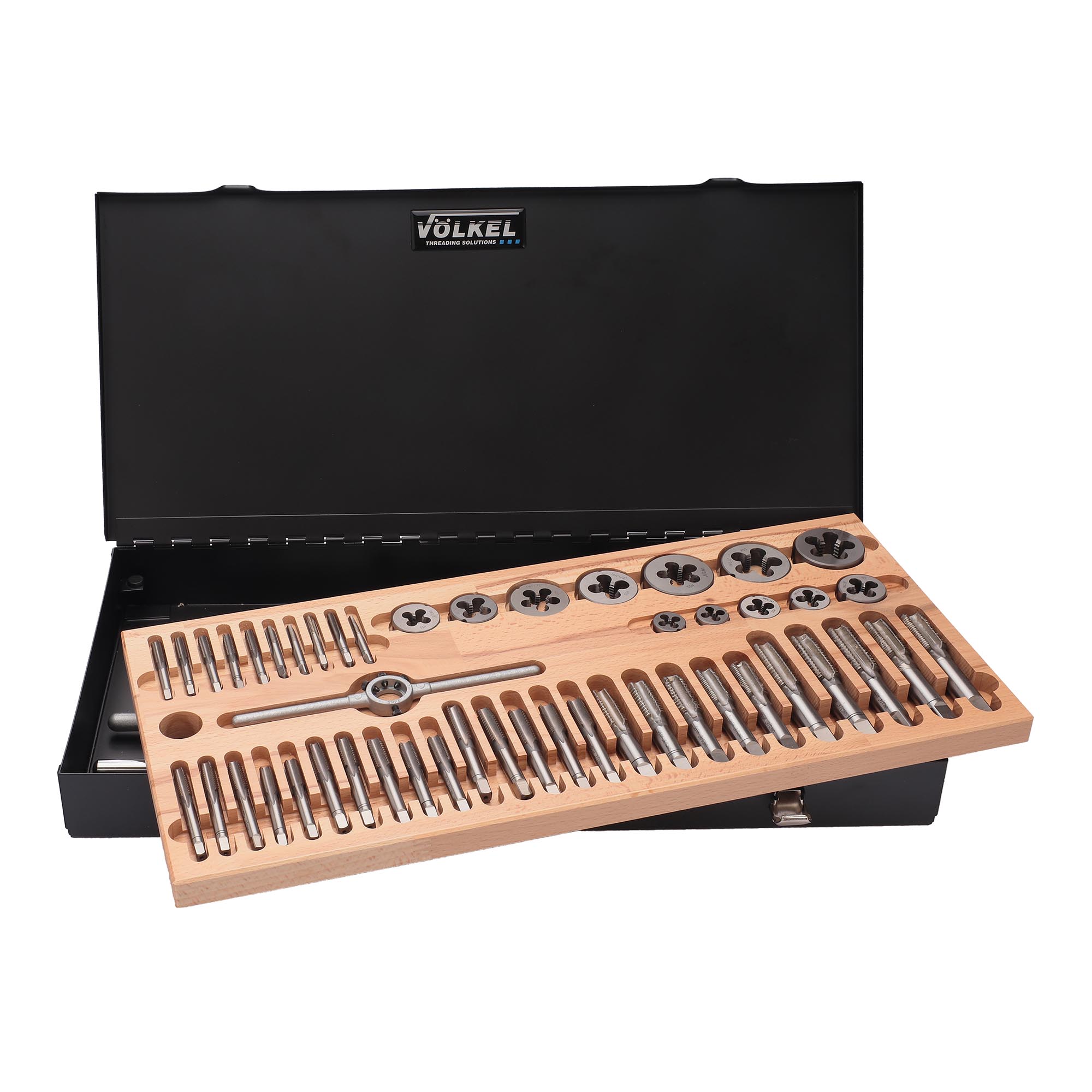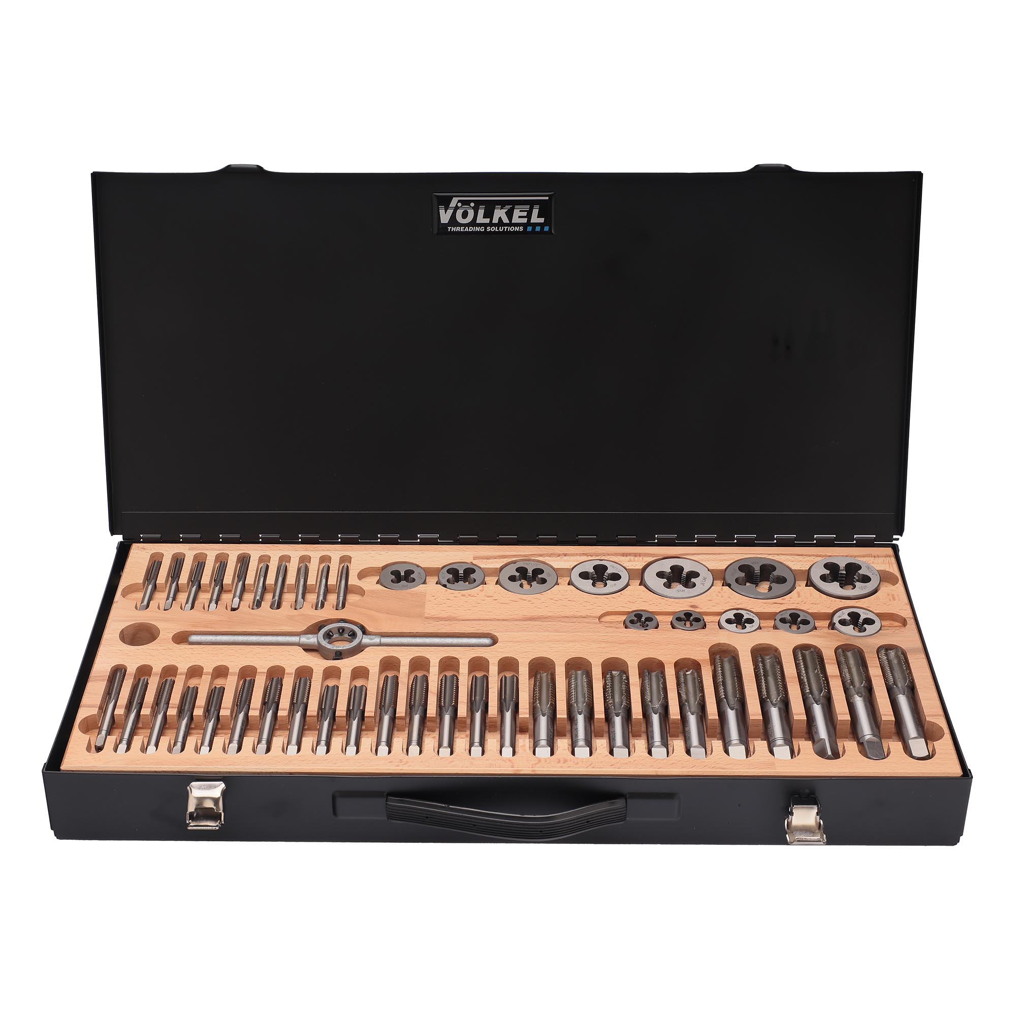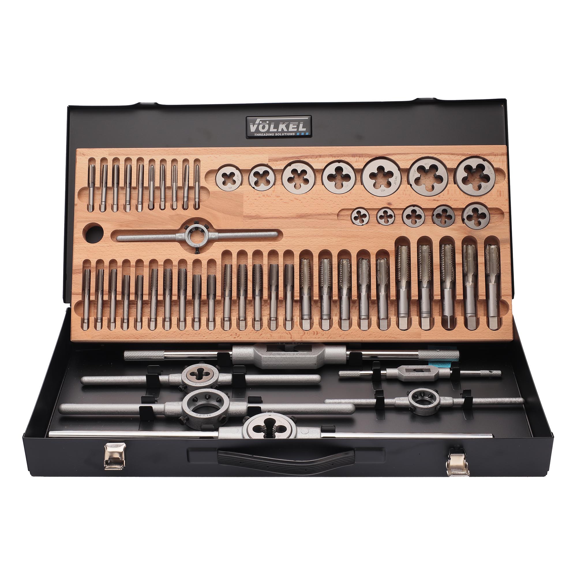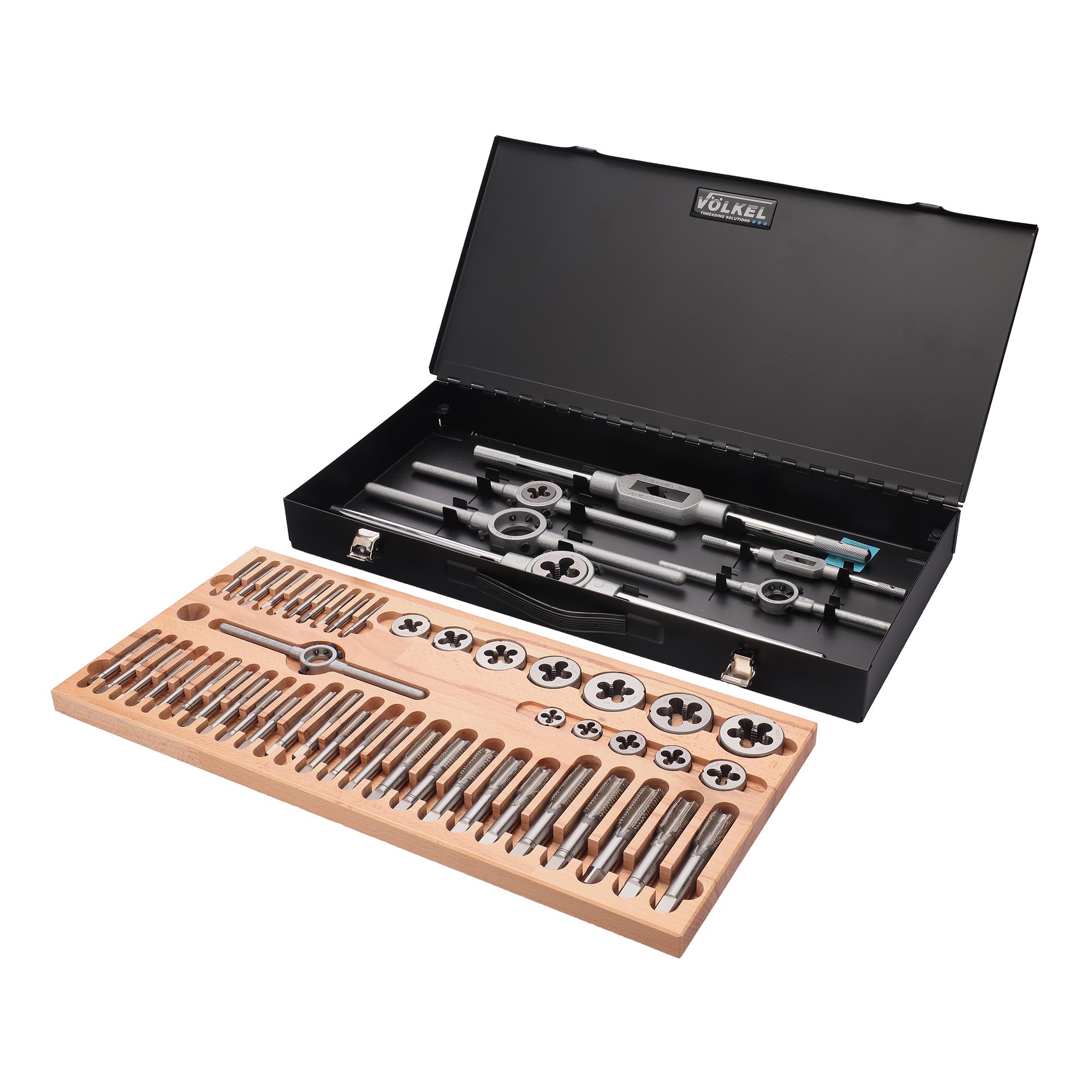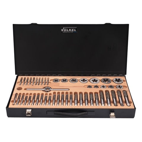 Набор метчиков и плашек предназначен для создания внутренней и наружной резьбы в различных материалах. Метчики и плашки изготовлены из высококачественной быстрорежущей стали HSS-G, которая гарантирует прочность и износостойкость. Подходит для обработки заготовок, выполненных из легированной стали, чугуна, алюминия, меди, бронзы, цинка, с пределом прочности до 900MPa. Инструмент упакован в прочный металлический чемодан.