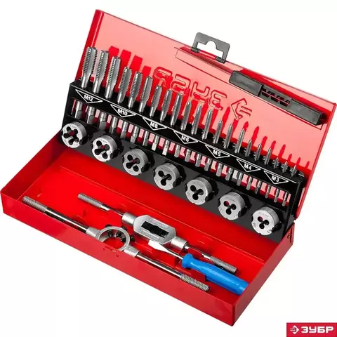 ЗУБР 32 предмета, 9ХС, набор метчиков и плашек 28129-H32_z01.