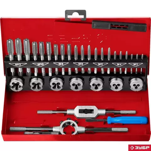 Набор резьбонарезной ЗУБР 28129-H32_z01, предназначен для нарезания внутренней и внешней метрической резьбы, не требующей чистовой доводки на металлических изделиях и восстановления ее поврежденных участков. Использование качественных материалов и современного оборудования гарантирует высокий рабочий ресурс и удобство при нарезании резьбы.