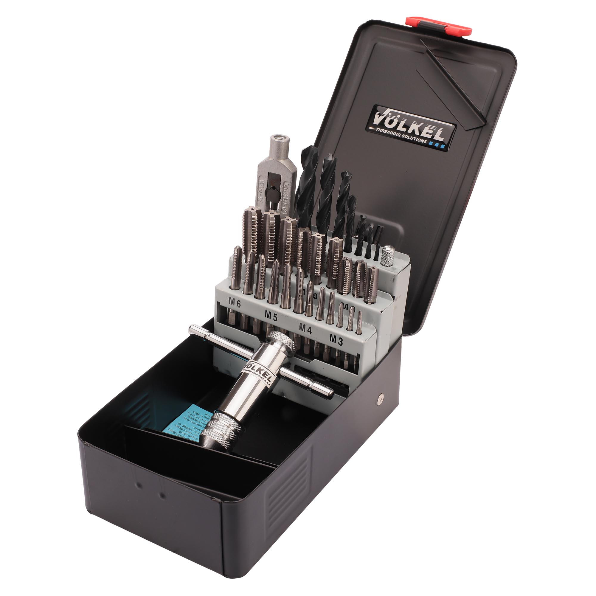 Набор метчиков комплектных M3 -M12 HSS-G DIN352 (+ вороток, сверла) 30пр Volkel 49511.