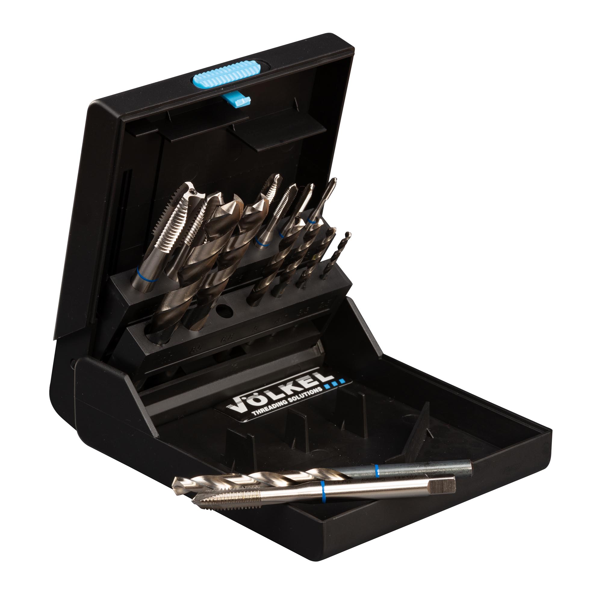 Набор метчиков предназначен для создания внутренней резьбы в различных материалах. Метчики и сверла изготовлены из высококачественной быстрорежущей стали HSSE, которая гарантирует прочность и износостойкость. Подходит для обработки заготовок, выполненных из нержавеющей и легированной стали, чугуна, алюминия, меди, бронзы, цинка, с пределом прочности до 1200MPa. Набор включает: машинные метчики для метрической резьбы с основным шагом, изготовленные в соответствии с DIN371/376, ISO2(6h); сверла по металлу HSS-Co, DIN338. Инструмент упакован в прочный и эргономичный пластиковый кейс.