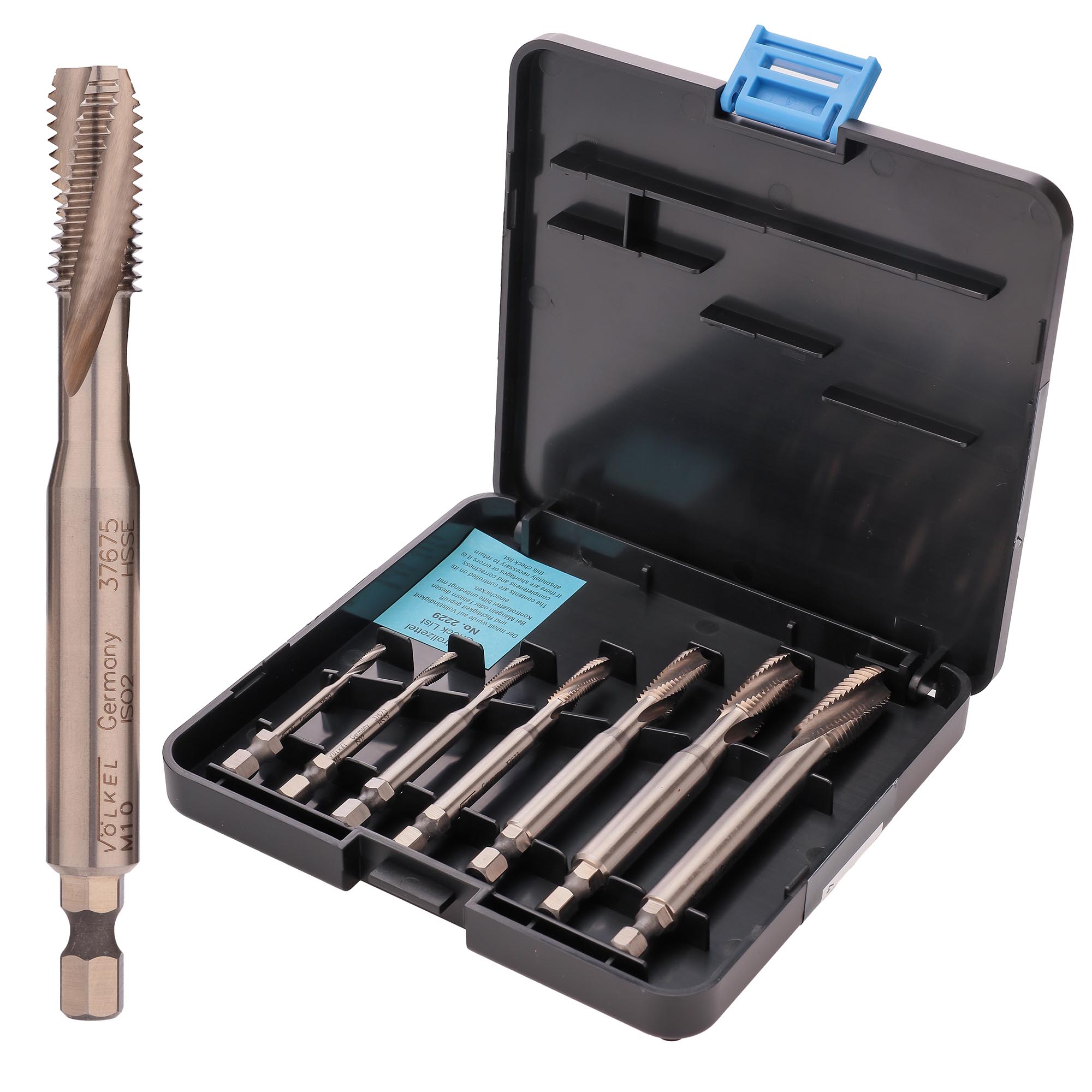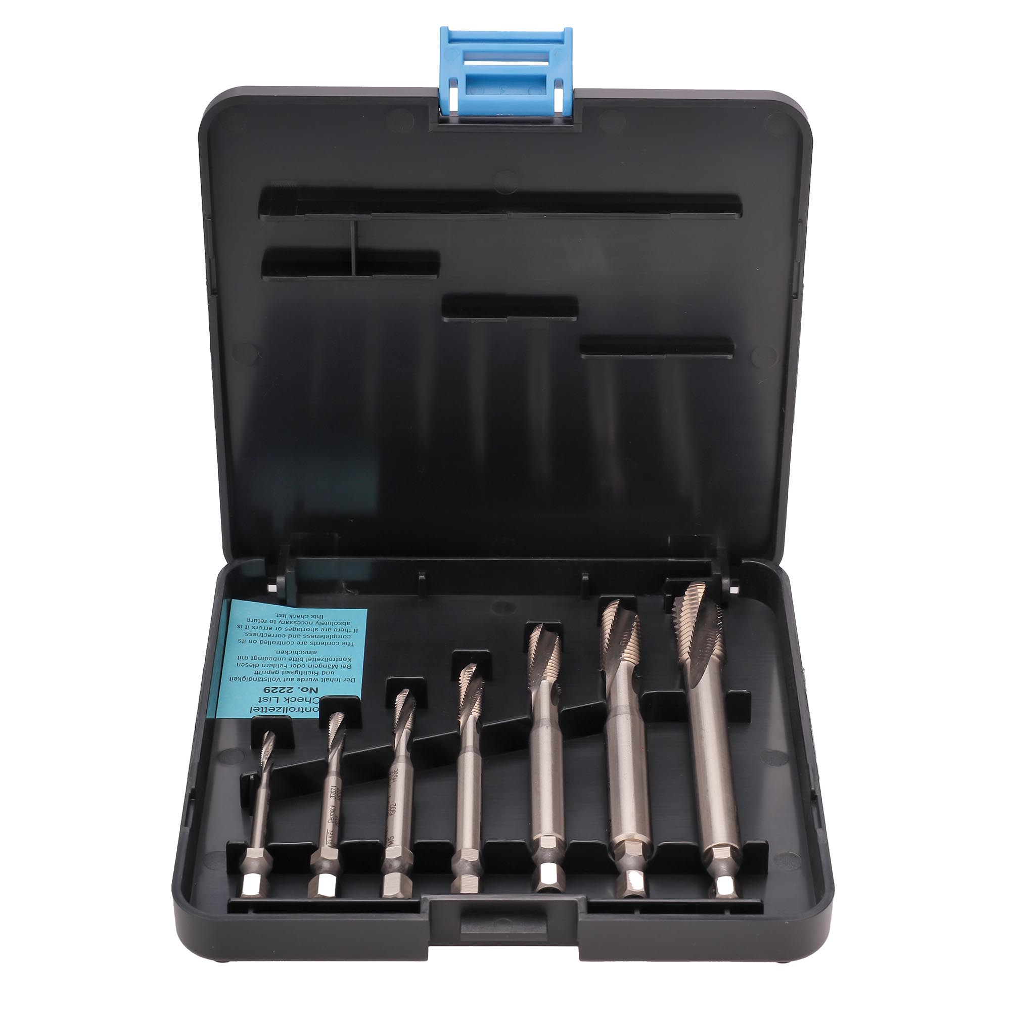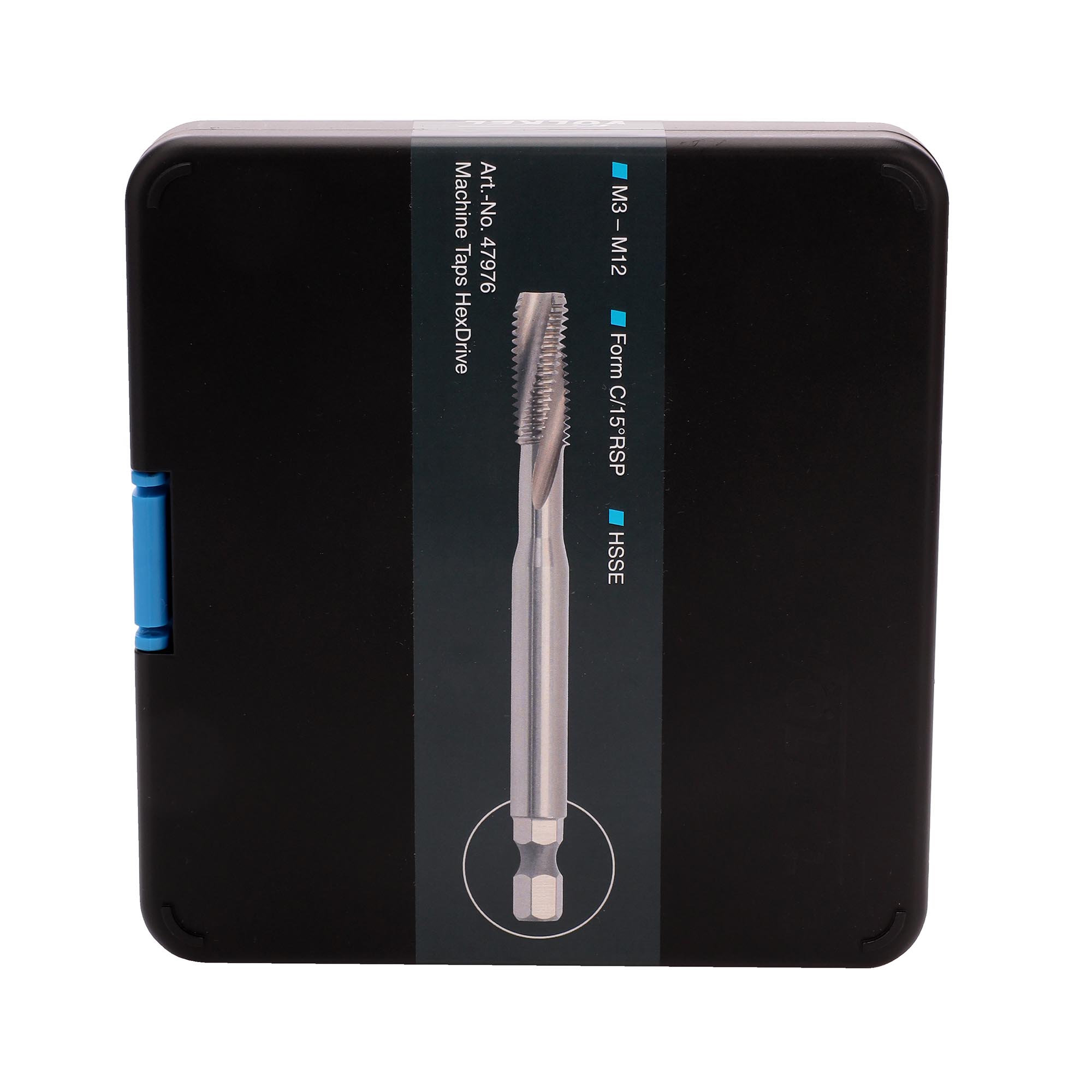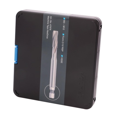 Метчик имеет 6-гранный хвостовик 1/4", что позволяет использовать в качестве держателя дрель-шуруповерт, а так же стандартные магнитные держатели для бит. Спиральная канавка с углом наклона 15° обеспечивает оптимальное стружкоудаление.