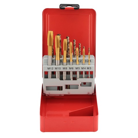 Форма захода B/4-5P, идеально подходит для сквозных отверстий, длинный конус заборной части легко центрируется в отверстии. Набор включает машинные метчики, для метрической резьбы с основным шагом, изготовленные в соответствии с DIN371/376, ISO2(6h), а также сверла под резьбу, изготовленные в соответствии с DIN338, h8.