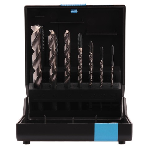 Набор метчиков предназначен для создания внутренней резьбы в различных материалах. Метчики и сверла изготовлены из высококачественной быстрорежущей стали HSSE, которая гарантирует прочность и износостойкость. Покрытие VAP (вапоризирование) снижает образование холодных наплавов и улучшает адгезию смазочных материалов на поверхности инструмента. Подходит для обработки заготовок, выполненных из нержавеющей и легированной стали, чугуна, алюминия, меди, бронзы, цинка, с пределом прочности до 1200MPa. Набор включает: машинные метчики для метрической резьбы с основным шагом, изготовленные в соответствии с DIN371/376, ISO2(6h); сверла по металлу HSS-Co, DIN338. Инструмент упакован в прочный и эргономичный пластиковый кейс.