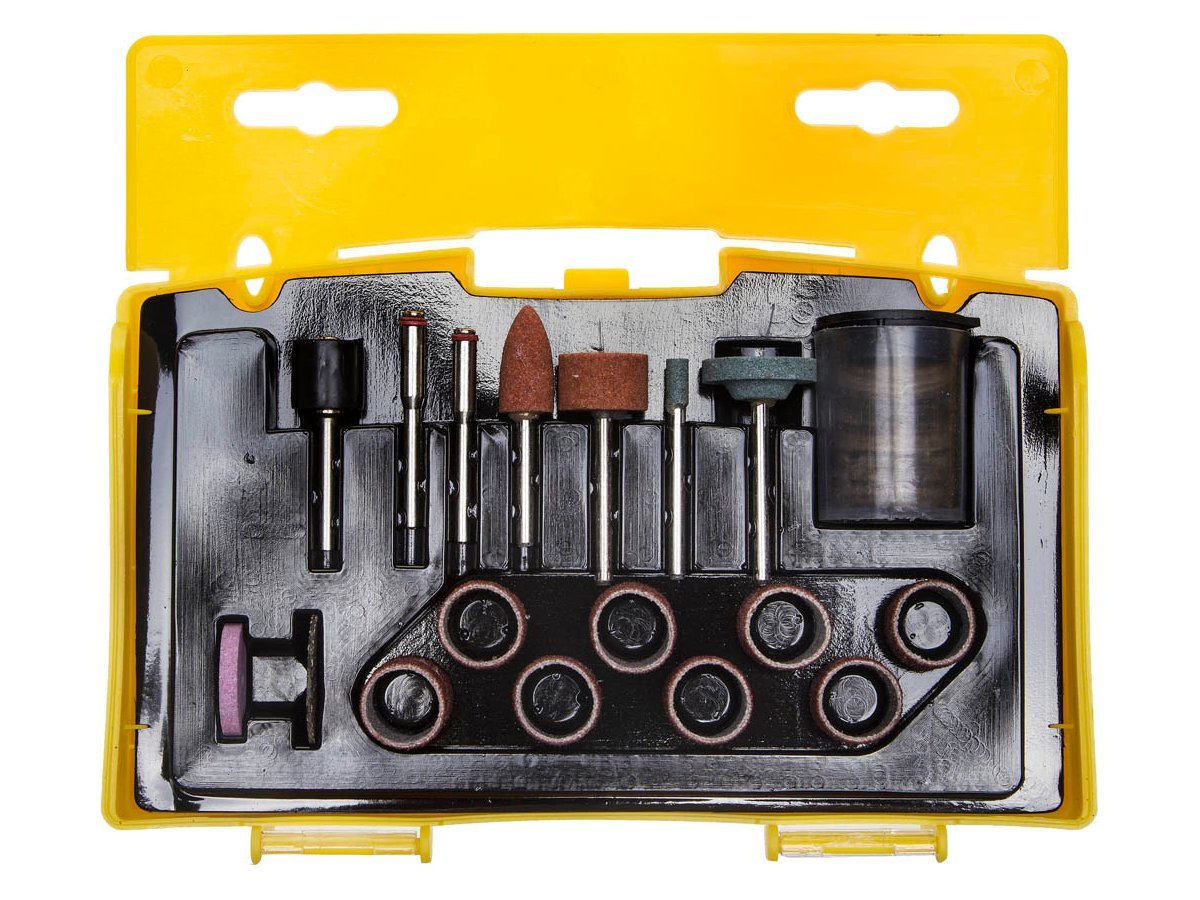 Комплектация: Державки для абразивных цилиндров - 2 шт Абразивные шлифовальные цилиндры - 8 шт. Державки для абразивных кругов - 2 шт. Круги шлифовальные - 4 шт. Круг отрезной армированный - 1 шт. Круг абразивный шлифовальный по металлу - 1 шт. Круги шлифовальные с