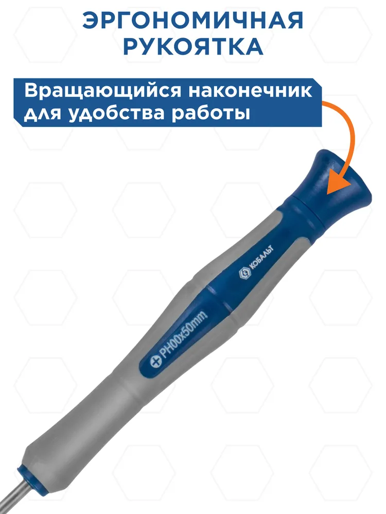 Набор отверток КОБАЛЬТ Ultra Grip для точных работ 50 мм, SL1.5;SL2.0;SL2.5;SL3.0; PH00;PH0;PH1. CR-V кейс (7 шт.) блистер (245-220)