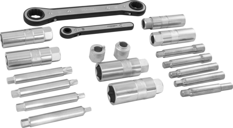 Набор применяется при производстве работ по обслуживанию элементов подвески автомобиля для демонтажа крепежных гаек штоков амортизаторов. Используется при обслуживании автомобилей производителей: VAG, FIAT, VAUXHALL/OPEL, PEUGEOT, RENAULT, BMW, MERCEDES, VOLVO и легковых автомобилей производства Японии.