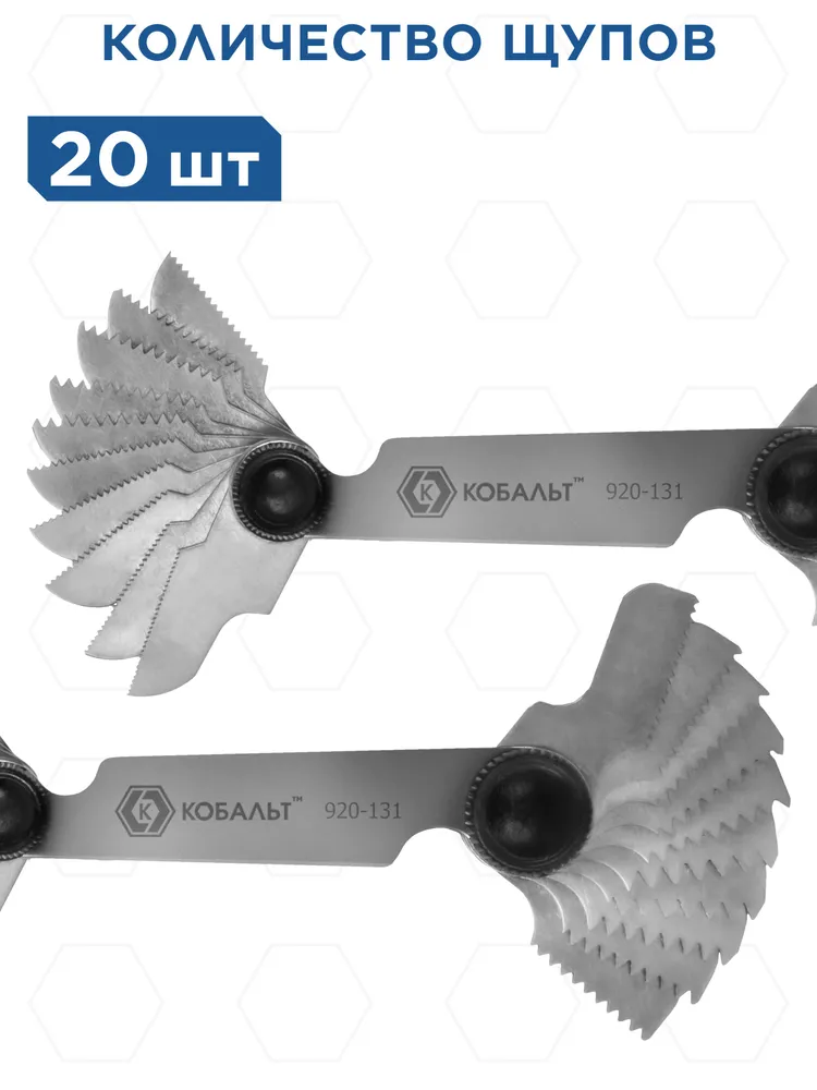 Уникальное предложение от "КОБАЛЬТ"! Набор из 20 универсальных шаблонов метрической и дюймовой резьбы (шаг 0,5–2 мм/10–28 TPI). Эффективность измерения и удобство хранения благодаря надежной блистровой упаковке. Подходит профессионалам и мастерам-любителям – ваш надежный помощник в работе!