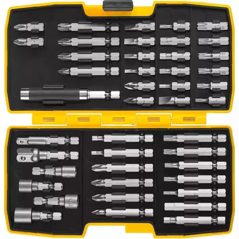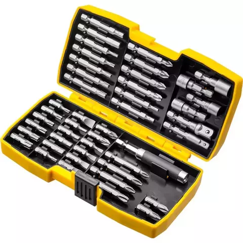 Комплектация: Биты, 25 мм, PH: 2, 2 - 2 шт. Биты, 25 мм, SL: 3, 4, 5, 6, 8 - 5 шт. Биты, 25 мм, PZ2 - 2 шт.2. Биты, 25 мм, HEX HOLE: 3, 4, 5, 6 - 4 шт. Биты, 25 мм, TORX HOLE: 10, 15, 20, 25, 27, 30, 40 - 7 шт. Биты, 50 мм, PH: 1, 2, 2, 3 - 4 шт. Биты, 50 мм, PZ: 1, 2