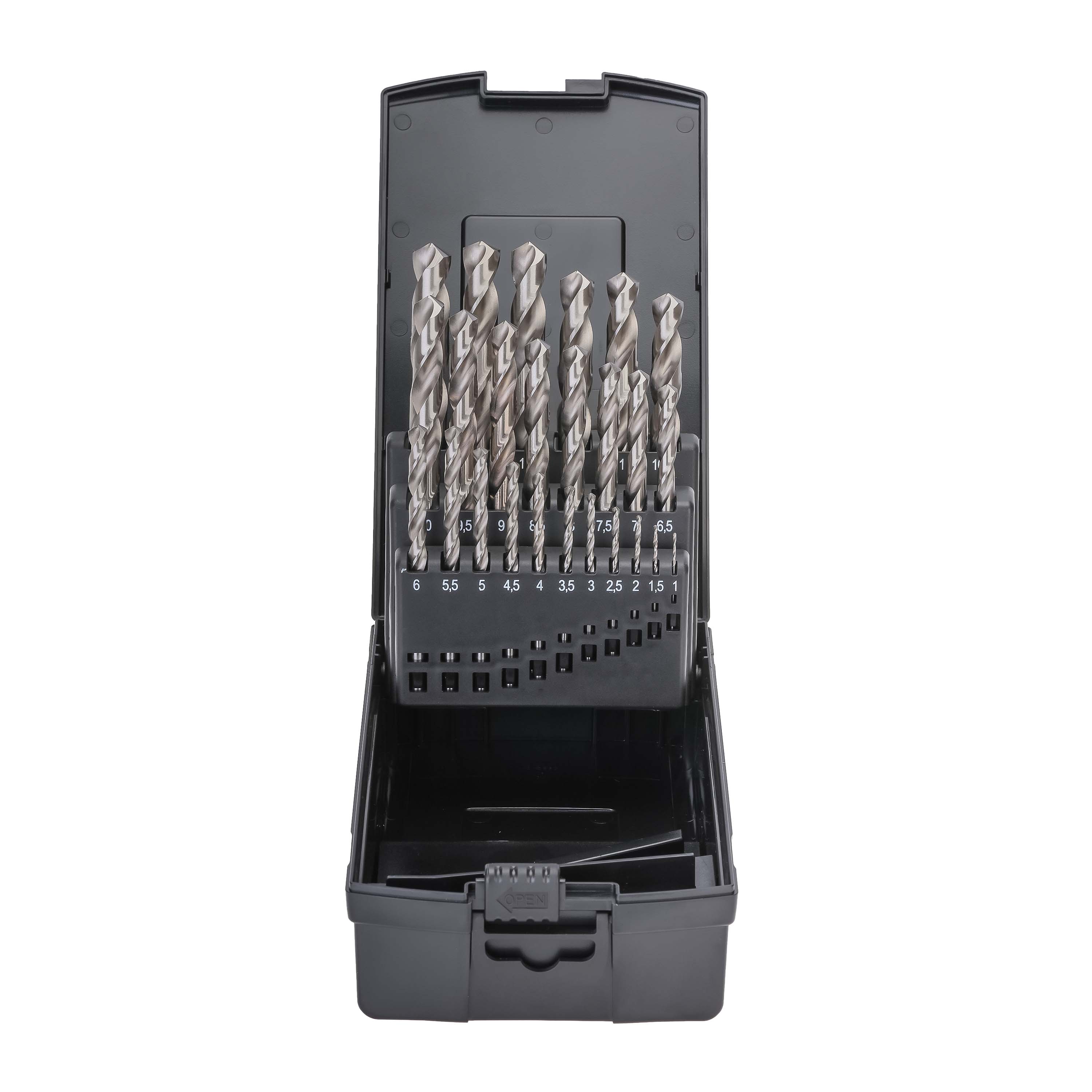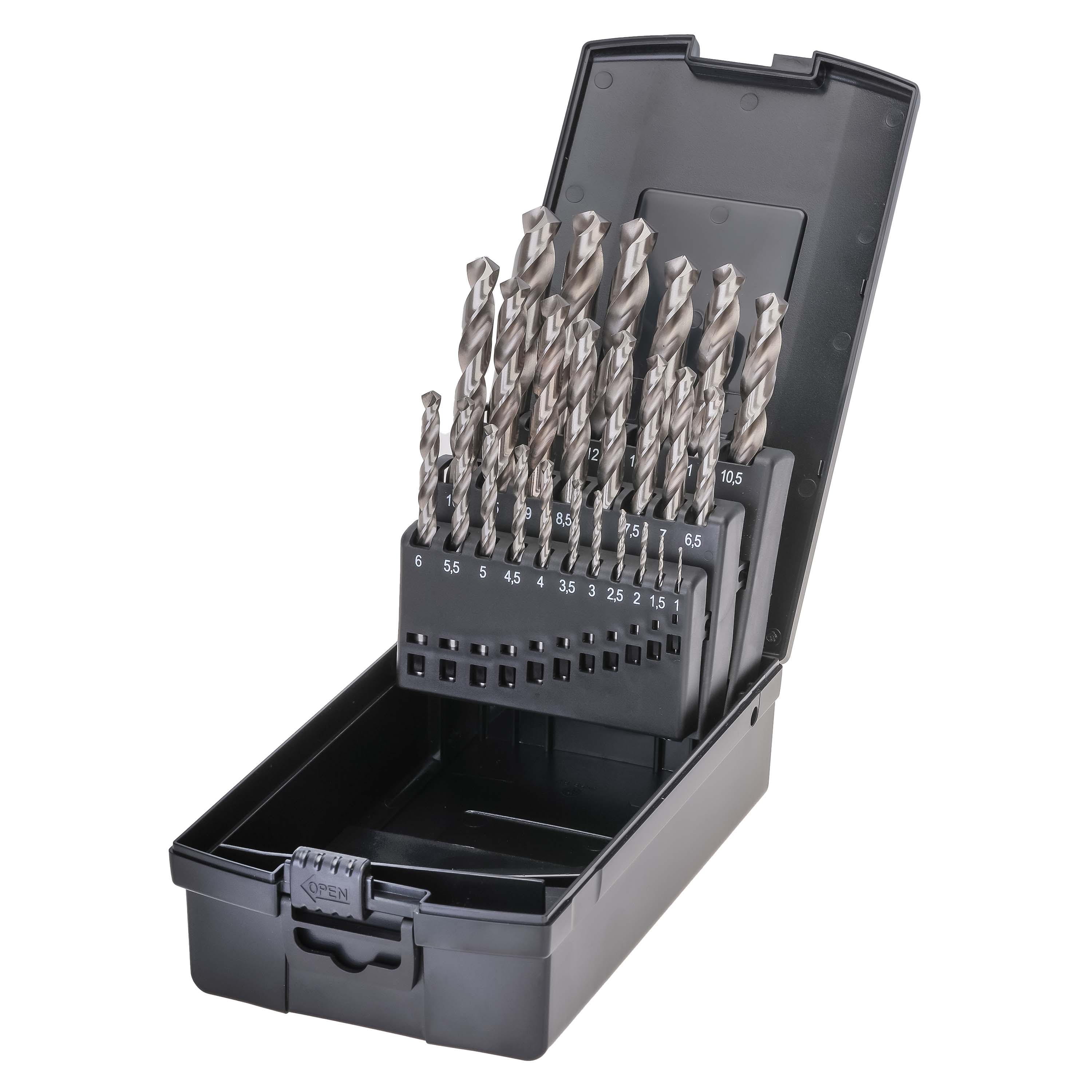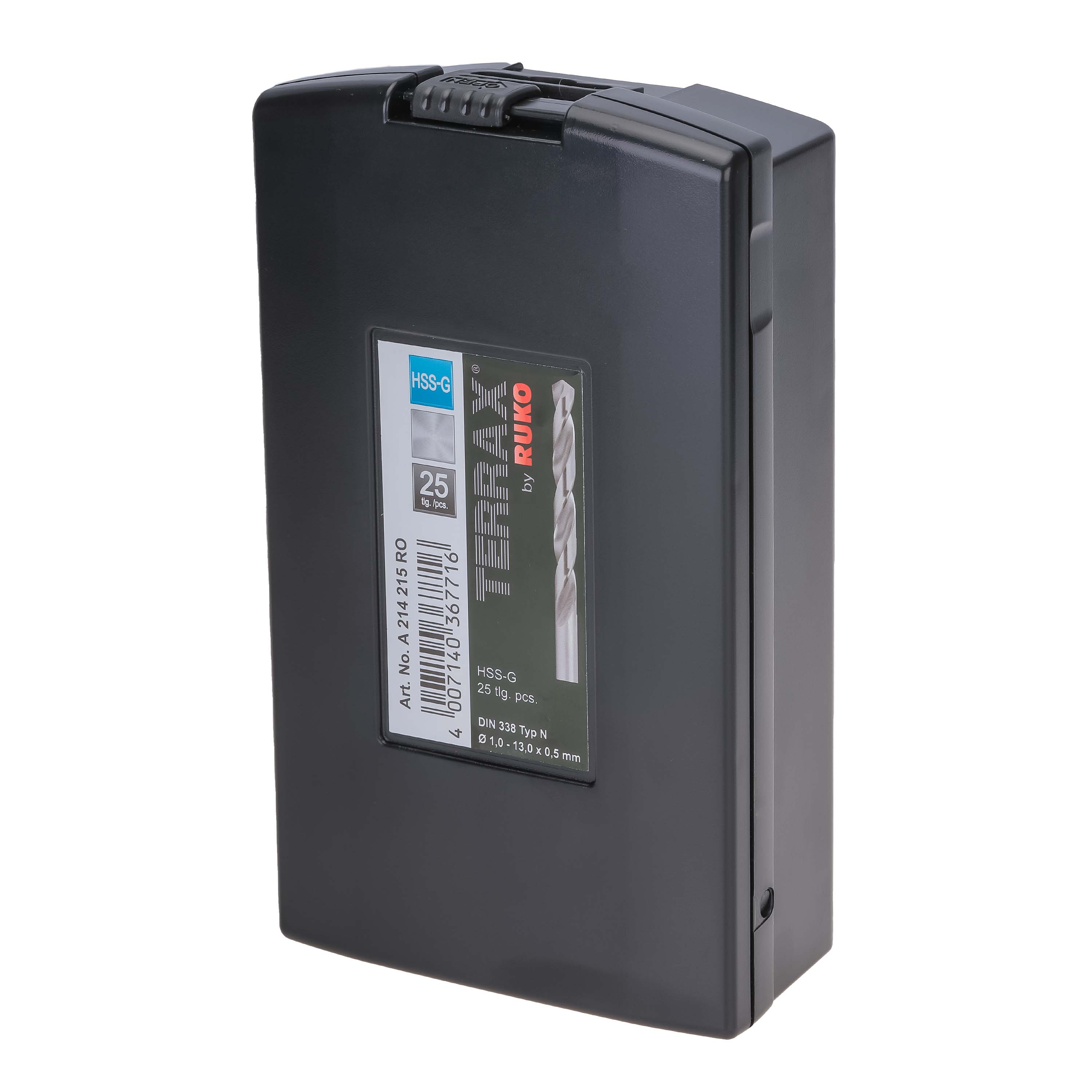 Набор сверл по металлу 25 шт, 1-13 мм, HSS-G Terrax by RUKO A214215RO предназначен для получения сквозных и глухих отверстий в изделиях выполненных из легированной стали, чугуна, алюминия, меди, бронзы, цинка, с пределом прочности до 900MPa. Служит для очень высоких нагрузок в промышленности и мастерских.