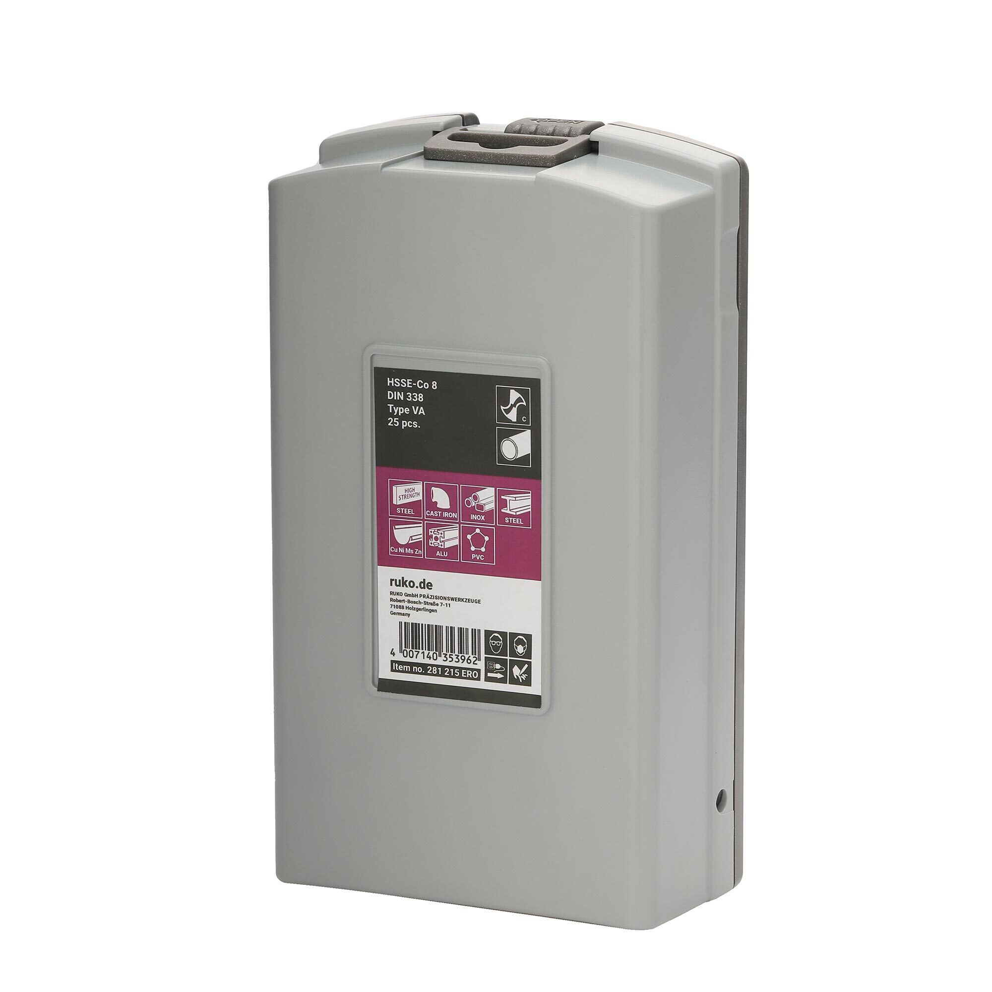Набор сверл по металлу 1-13 мм, HSSE-Co8, 25 шт RUKO 281215ERO предназначен для получения сквозных и глухих отверстий в изделиях из высокопрочных сталей. Подходит для обработки заготовок, выполненных из легированной или нержавеющей стали, чугуна, алюминия, меди, бронзы, цинка, с пределом прочности до 1200MPa.