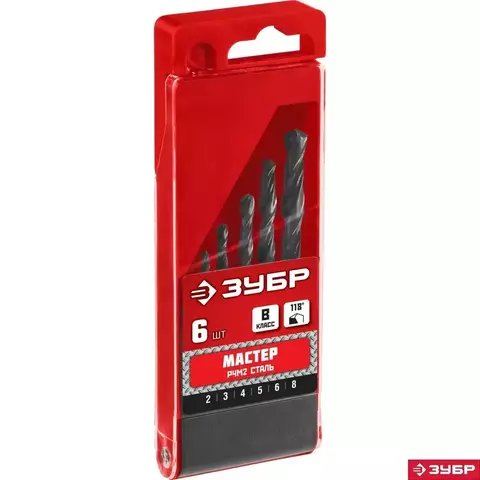 ЗУБР 6 шт, (2-8 мм), сталь Р4М2, класс В, набор сверл по металлу (29605-H6)
