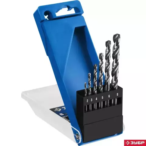 ЗУБР 6 шт. (Ø 2-8 мм), класс А, Р6М5, набор сверл по металлу 29625-H6 Профессионал.