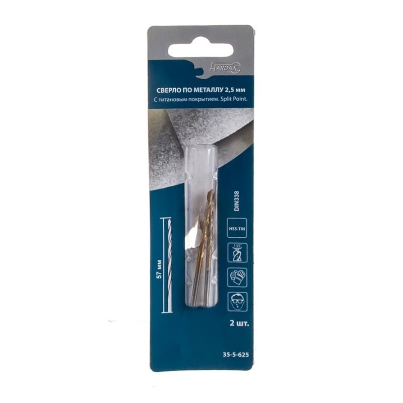35-5-625 Сверло по металлу 2,5 x 57 мм, заточка 135 градусов, Р6М5/HSS TIN, 2 шт. (РемоКолор)