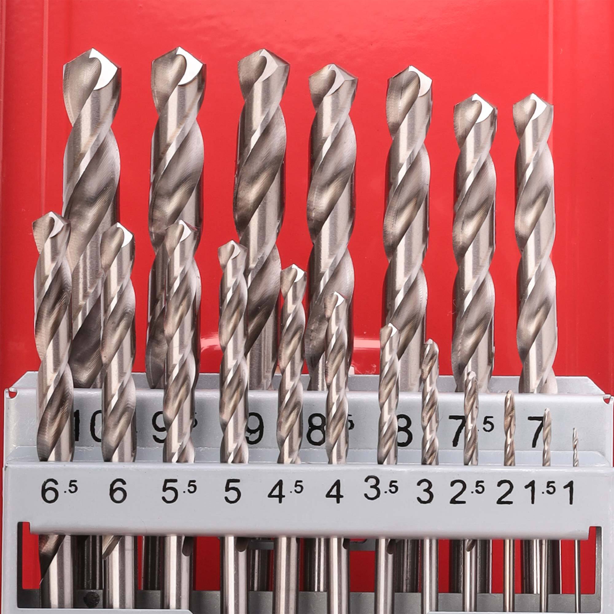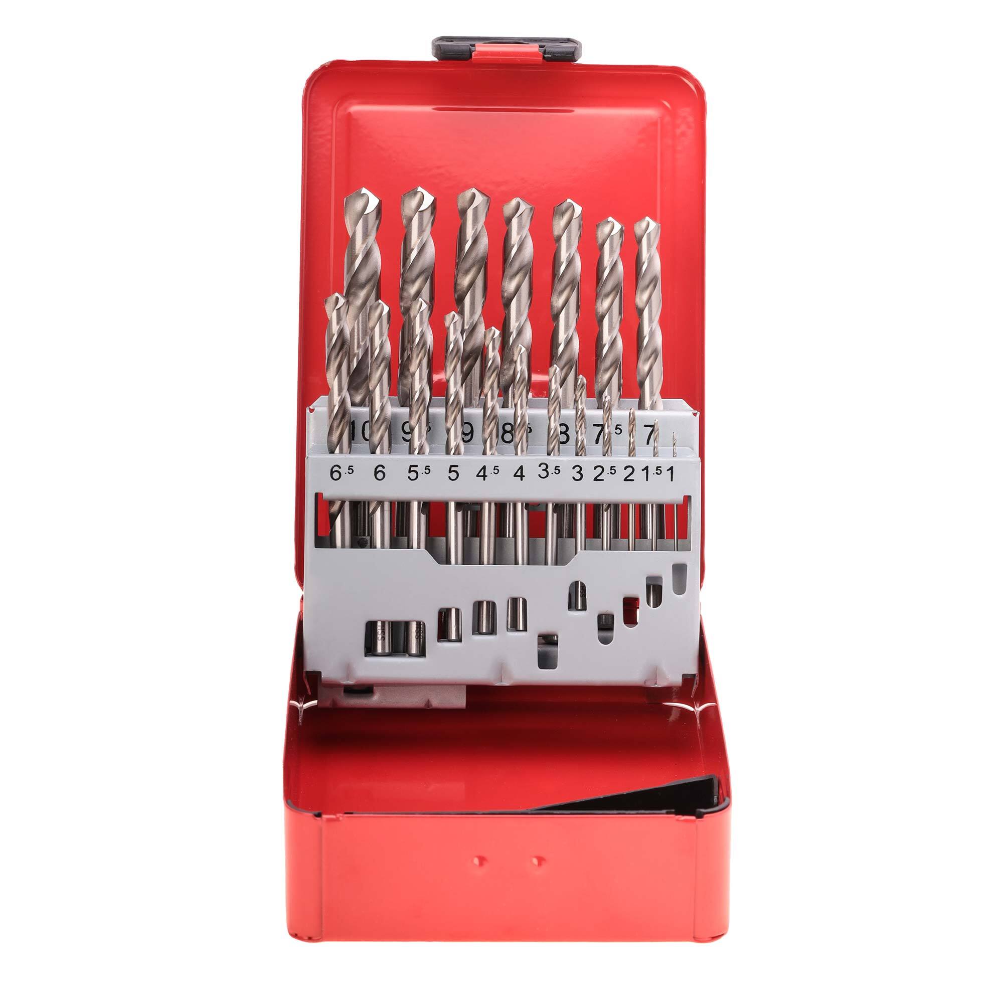 Набор сверл Ruko по металлу 1-10мм с шагом 0,5мм 19шт: 1,0x12x34; 1,5x18x40; 2,0x24x49; 2,5x30x57; 3,0x33x61; 3,5x39x70; 4,0x43x75; 4,5x47x80; 5,0x52x86; 5,5x57x93; 6,0x57x93; 6,5x63x101; 7,0x69x109; 7,5x69x109; 8,0x75x117; 8,5x75x117; 9,0x81x125; 9,5x81x125; 10,0x87x133