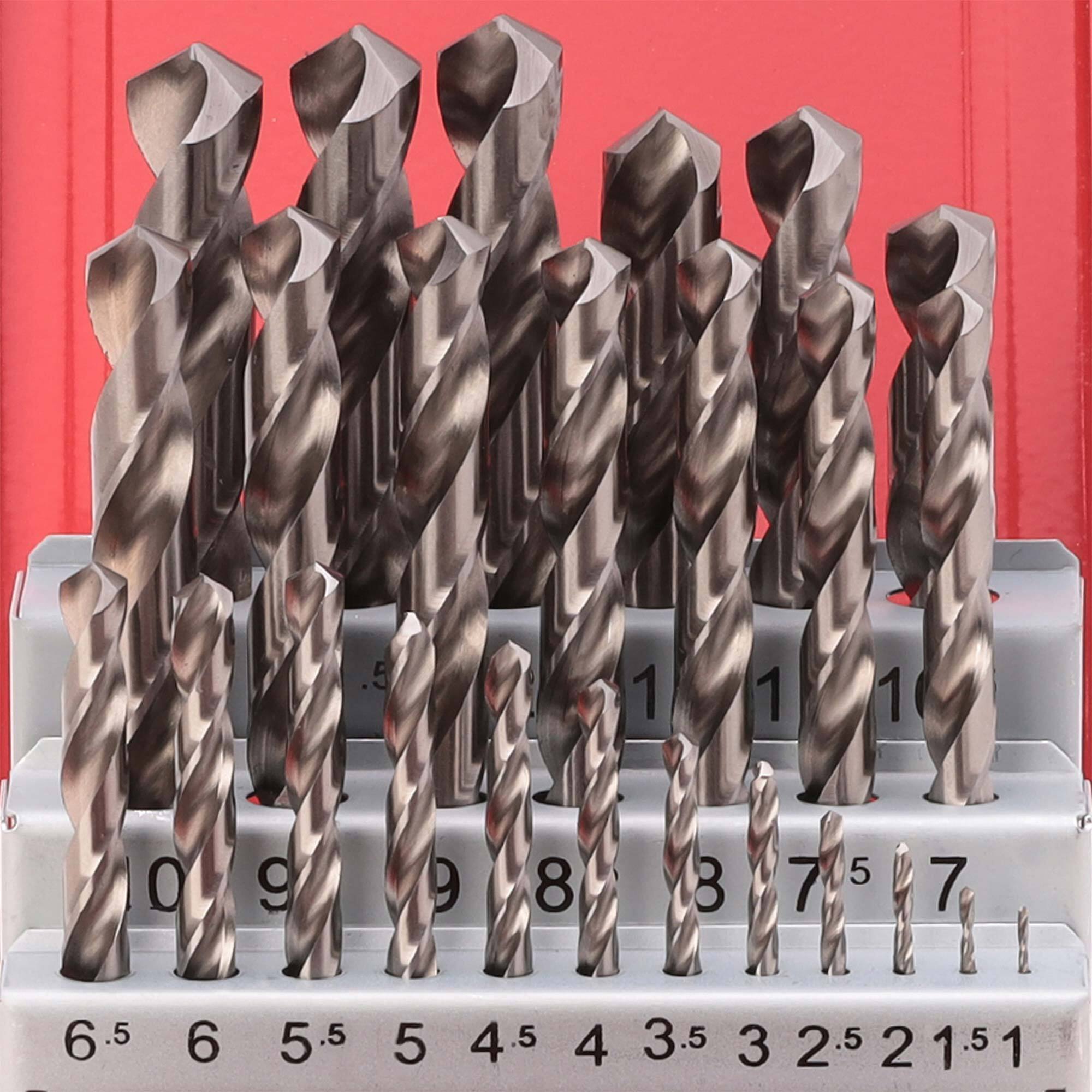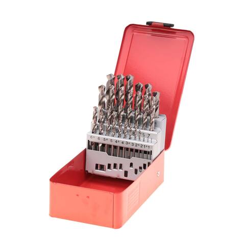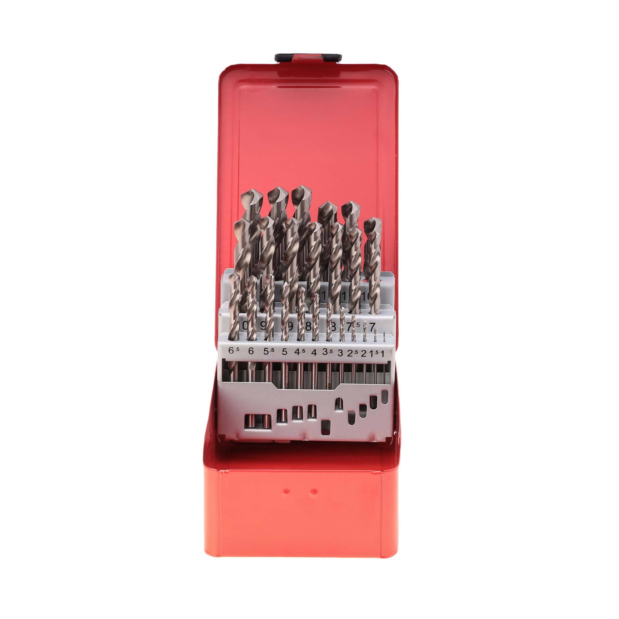 Набор сверл по металлу 1-13мм с шагом 0.5 мм 25шт DIN338 HSS-G RUKO 214215. Прецизионные спиральные сверла из высококачественной быстрорежущей стали HSS. Стандарт DIN 338, с прецизионной шлифовкой, цилиндрические, праворежущие, с перекрестной заточкой начиная с 3 мм, допуск по диаметру h8. Поверхность шлифованная. Для очень высоких нагрузок и прецизионной обработки в промышленности и мастерских. Применение: сверление стали и стальных отливок, легированных и нелегированных, серого и ковкого чугуна, чугуна со сфероидальными включениями графита, металлокерамики, нейзильбера, графита, цветных металлов, полимерных материалов. С пределом прочности при растяжении до 900 Н/мм². Угол спирали: 25-30º. Профиль канавки: нормальный. Сердечник: нормальный. Угол заточки: 118º. Заточка: форма C. Упакованы в металлический кейс.