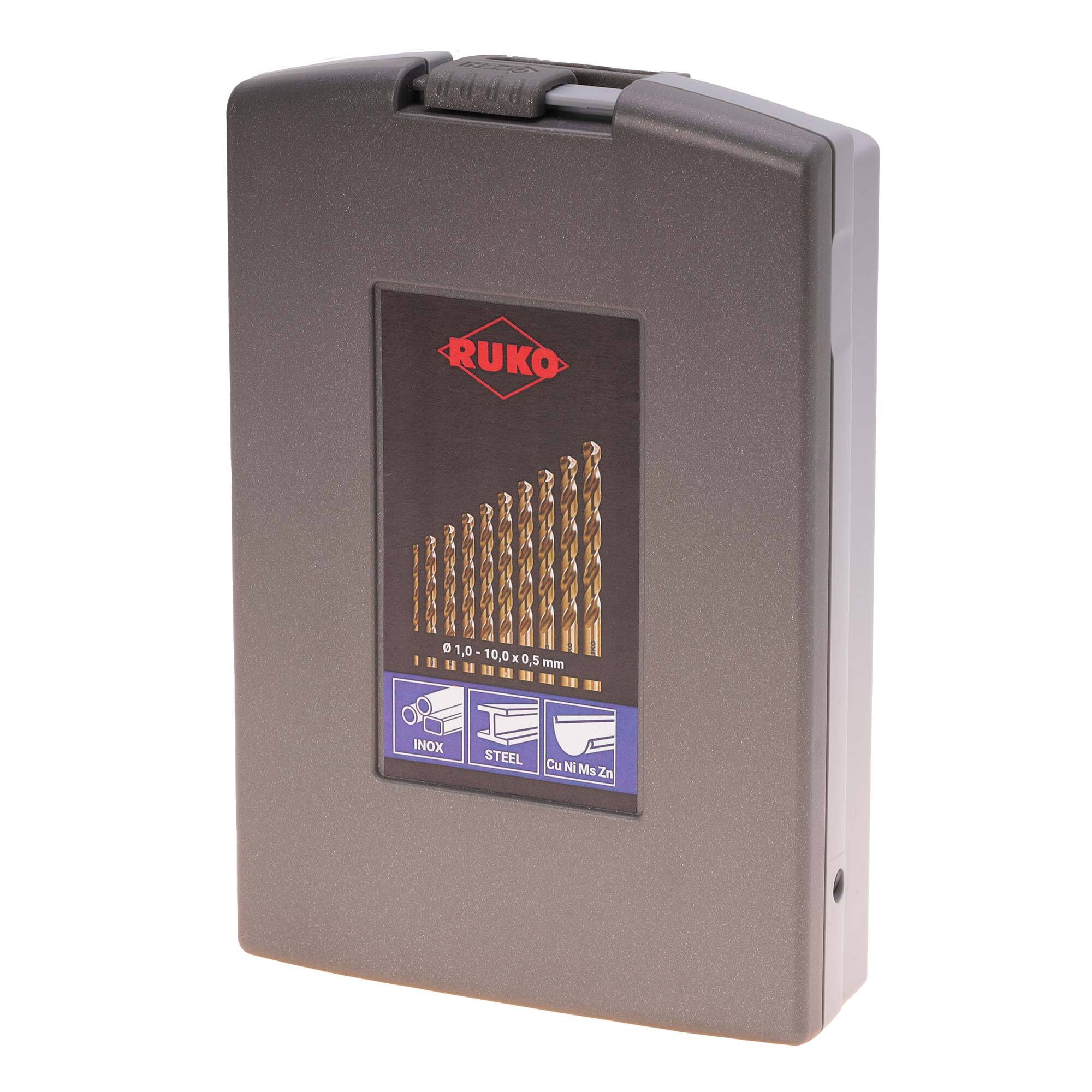 Набор сверл по металлу 1-10мм 19шт DIN338 HSSE-Co5 130° (пл. кейс) Ruko 215214RO
