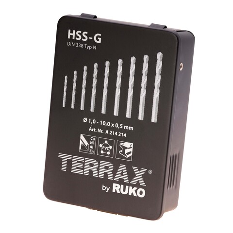 Набор сверл по металлу 1-10мм 19шт HSS-G DIN338 Terrax by Ruko A214214.