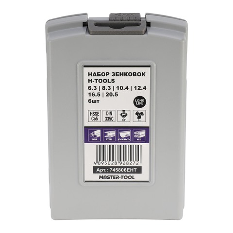 Набор зенковок 90° 6,3-20,5мм 3z HSSE-Co5 6шт H-Tools 745806EHT