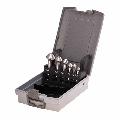 Набор из 6 зенковок и бит для удаления заусенцев DIN 335, форма C, 90 ° Ø 6,3 - 8,3 - 10,4 - 12,4 - 16,5 - 20,5 мм