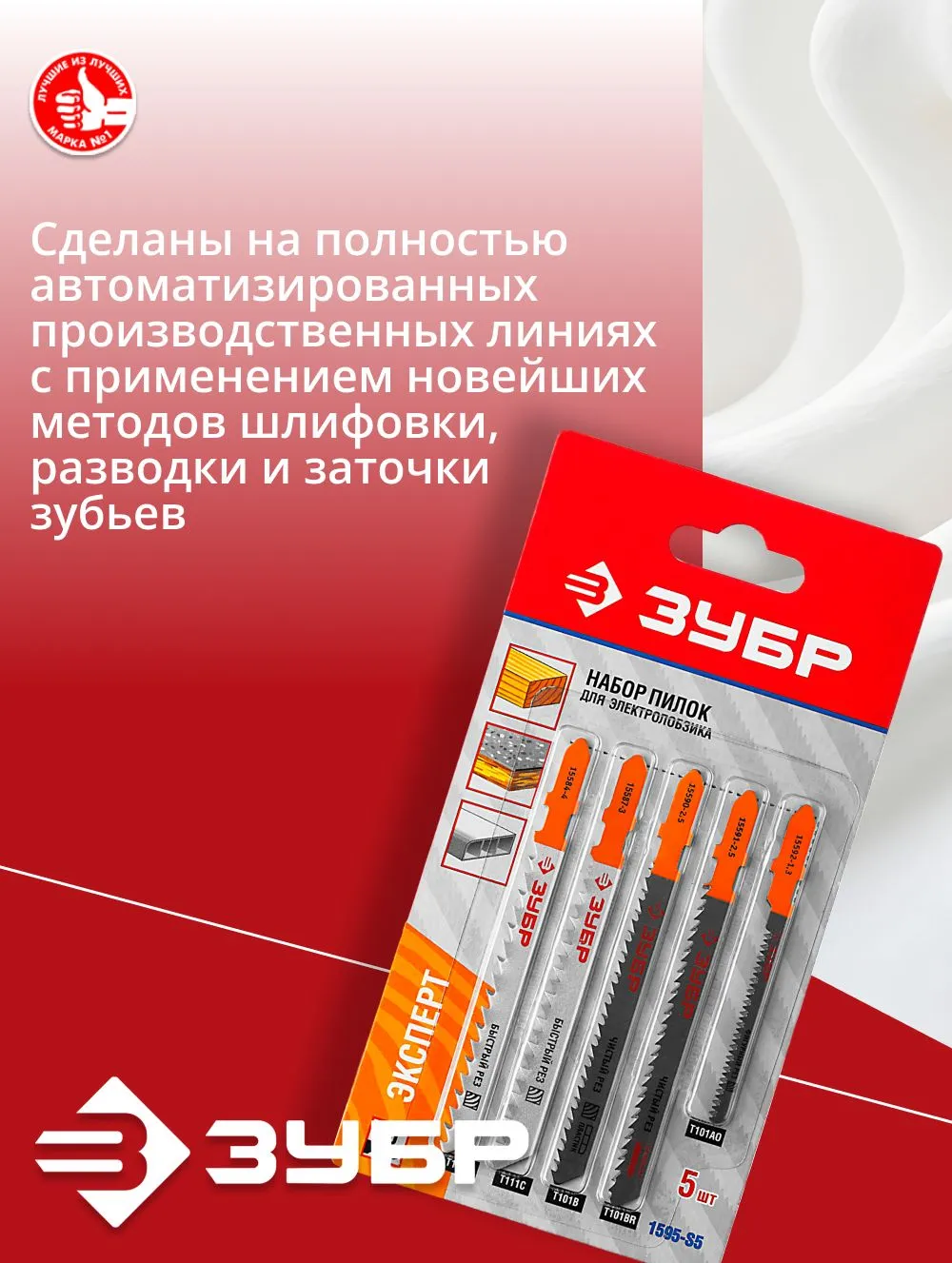Откройте для себя профессиональные полотна ЗУБР "ЭКСПЕРТ"! Т-Х хвостовик обеспечивает точное ведение реза и надежное крепление в электролобзике. Подходит для работы с древесиной и ДВП. В наборе 5 полотен – этого достаточно, чтобы воплотить самые смелые идеи в ремонте и строительстве! Покупка набора выгодна и удобна – экономьте время и деньги, выбрав качество ЗУБР!