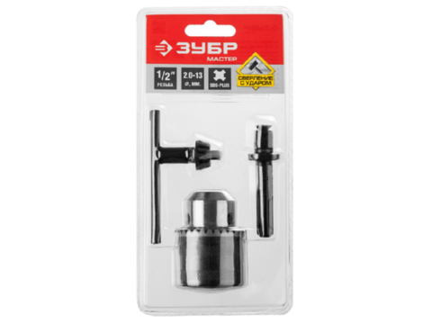 Набор ЗУБР "Мастер": Патрон ключевой 13 мм, "SDS+" адаптер, ключ для патрона, посадочная резьба 1/2", Д 2,0-13мм