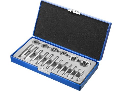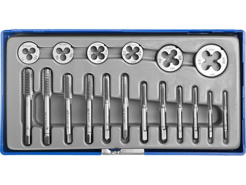 Набор метчиков и плашек ЗУБР 18 предметов, в пластиковом боксе, сталь 9ХС