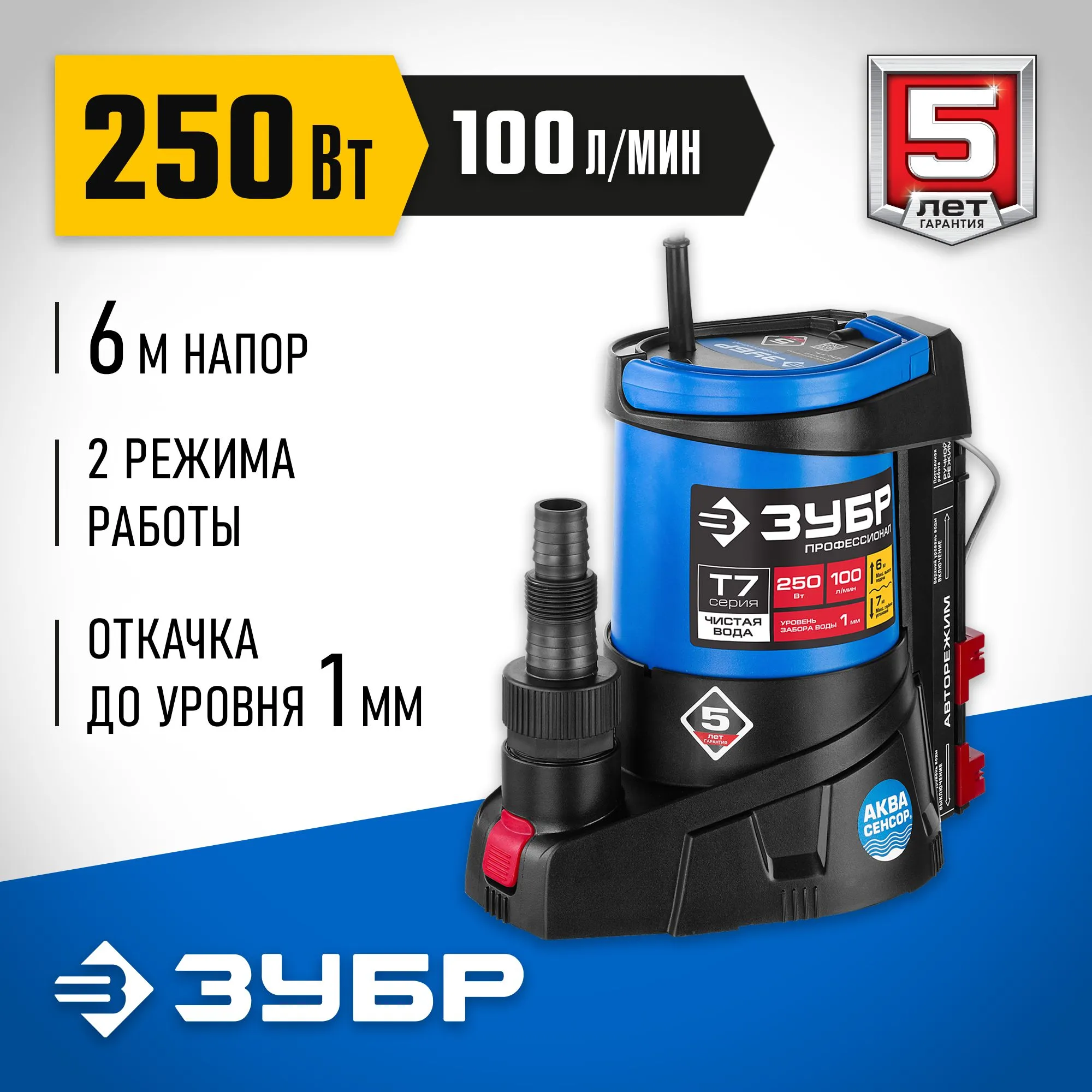 Погружной насос «АкваСенсор» от бренда ЗУБР — надежная техника для профессионалов! С мощностью 250 Вт он быстро перекачает до 100 литров жидкости в минуту, а длина кабеля в 10 лет позволит достать даже до труднодоступных мест. Благодаря минимальному уровню включения всего в 1 мм, устройство начнет работу практически мгновенно. Идеален для дренажа чистых вод на даче или при ремонте в доме. Купите насос сейчас и забудьте о проблемах с водой навсегда!