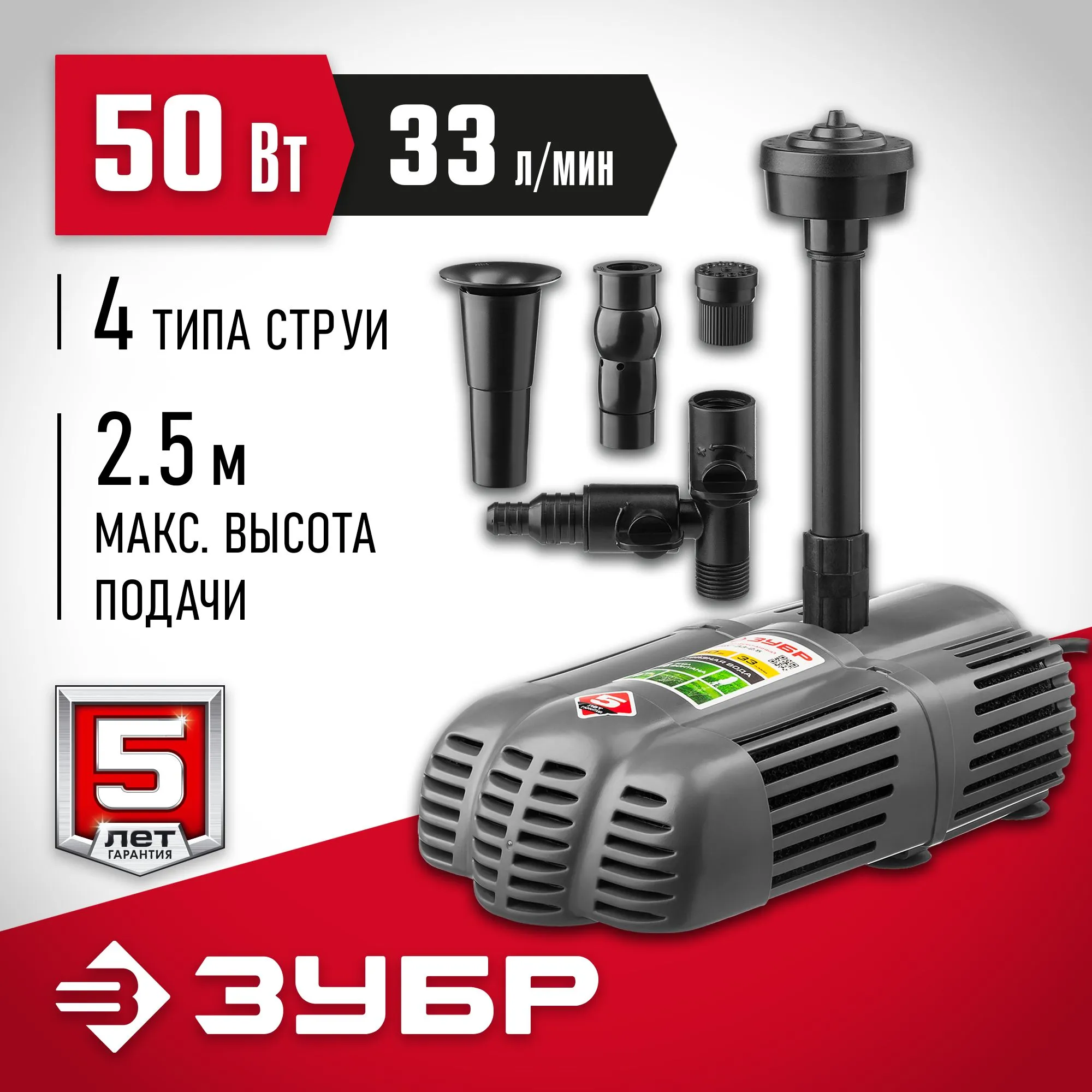 ЗУБР 50 Вт, 33 л/мин, насос фонтанный ЗНФЧ-33-2.5"