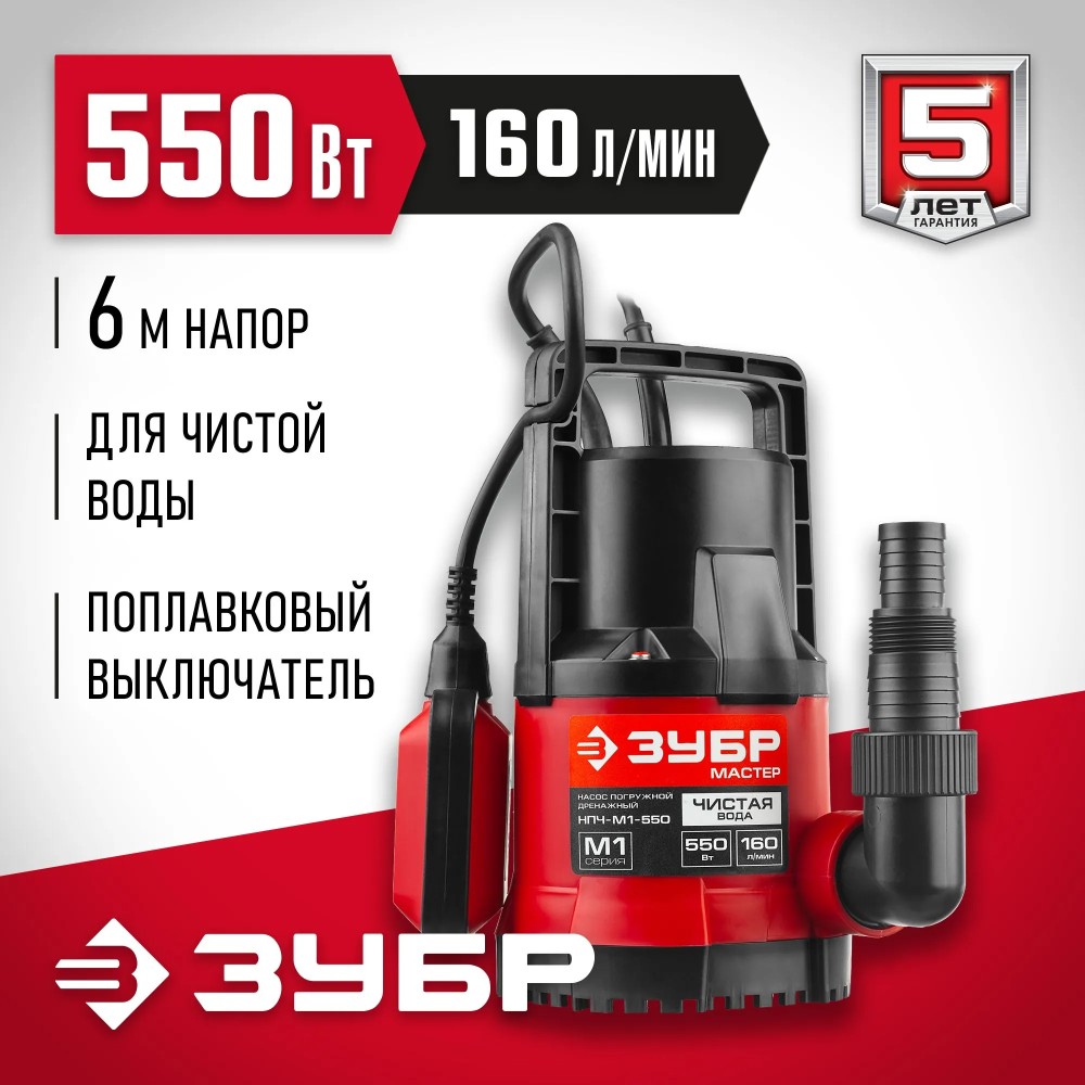 Погружной дренажный насос ЗУБРОпустите этот надежный помощник в решение любых проблем с откачиванием грязной воды! Мощность двигателя составляет внушительные 550 Вт — такой объем работы, как осушение затопленных помещений или выкачка колодцев, выполняется легко и быстро. Пропускная способность достигает целых 160 литров в минуту при максимальном напоре 6,5 метров. Подходит даже для очень загрязненной жидкости диаметром частиц до 35 мм. Встроенный поплавок обеспечит автоматизацию процесса. Работа облегчена благодаря простоте конструкции и удобству эксплуатации.