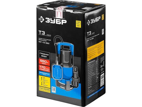 Насос ЗУБР "ПРОФЕССИОНАЛ" Т3 погружной дренажный для грязной воды (d пропуск частиц до 35мм), 550Вт, пропуск способн 170л/мин, напор 7,0м, поплавок