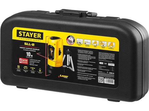 Нивелир лазерный линейный SLL-2, STAYER 34960-H2, штатив, кейс, 10м, точн. +/-0,5 мм/м