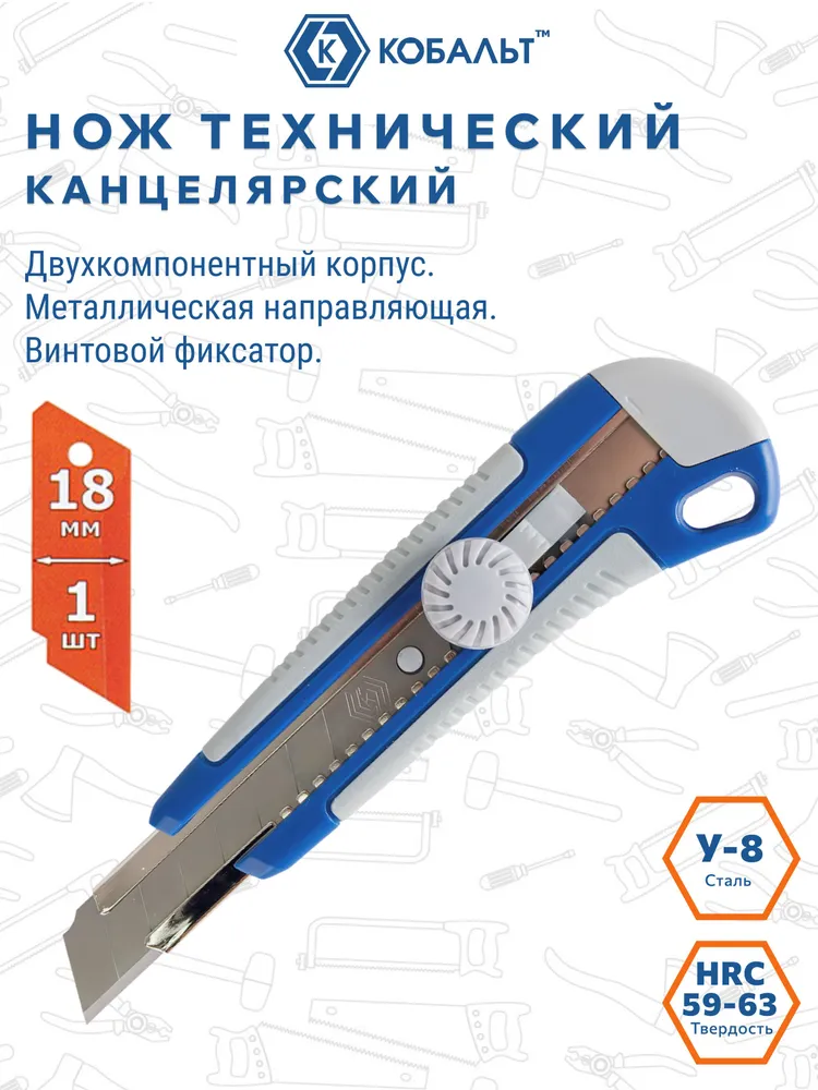 Откройте для себя идеальный помощник в ремонте и строительстве! Нож технический «Кобальт» с надежным лезвием 18 мм и эргономичным дизайном создан для точной работы. Двухкомпонентный корпус обеспечивает комфортное использование, а металлическая направляющая гарантирует безопасность эксплуатации. Подчеркните профессионализм своим выбором – нож "Кобальт" уже ждет вас!